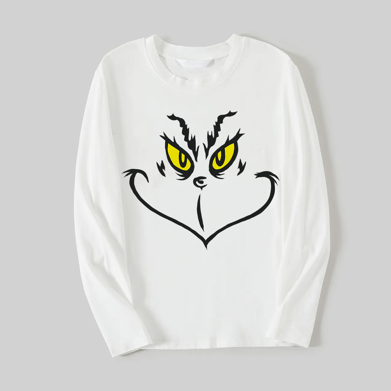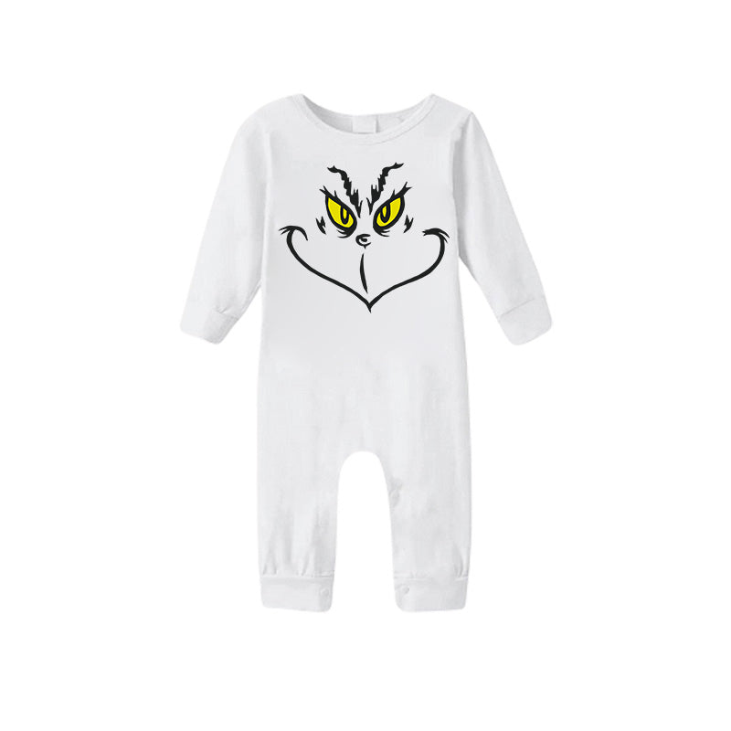 Celebrate the holidays in style with our family"2024 Cat Face Smile Christmas Cartoon Pattern Contrast White Long Sleeve with Classic Red and Green Plaid Pants Family Matching Pajamas with Dog". Featuring a festive green cartoon character with a Santa hat pattern on a white top with contrast black long sleeves, this set is paired with cozy green and black plaid pants. Designed for comfort and warmth, these pajamas are made from soft, breathable fabric that's perfect for festive family gatherings, holiday photos, or cozy nights at home. Bring your family together and make the season extra special with these charming matching pajamas.