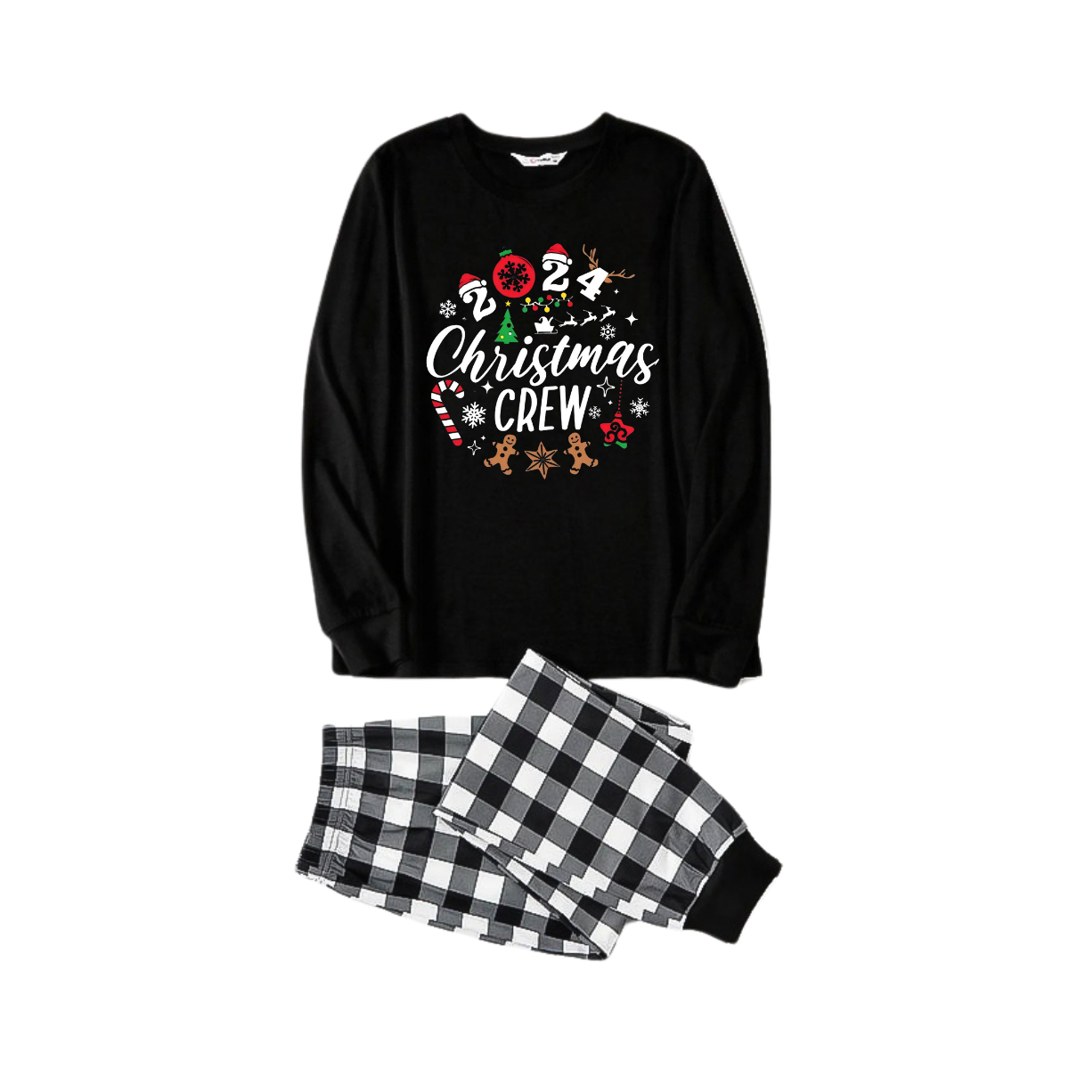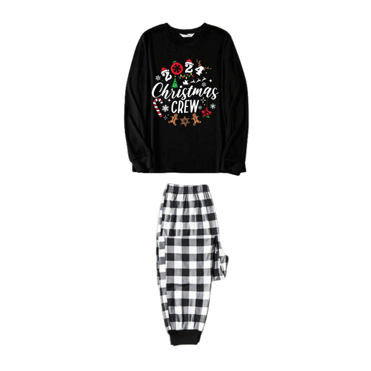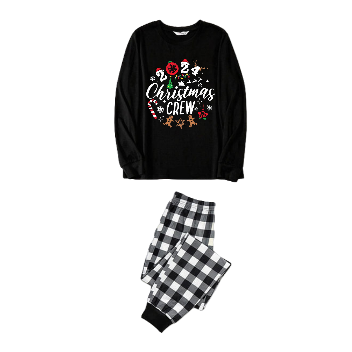 2024 Christmas Crew Making Memories Together Text Print Black Long Sleeve Top with Black And White Plaid Pants Family Matching Pajamas