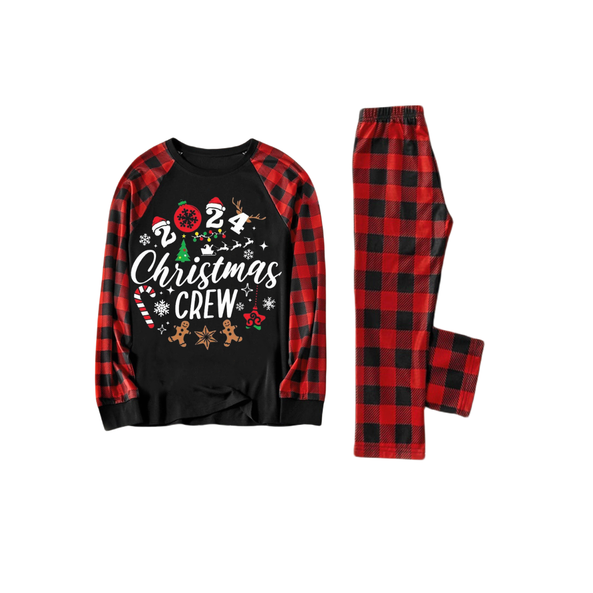 "2024 Christmas Crew" Text Print Black & Red Plaid Christmas Matching Pajamas