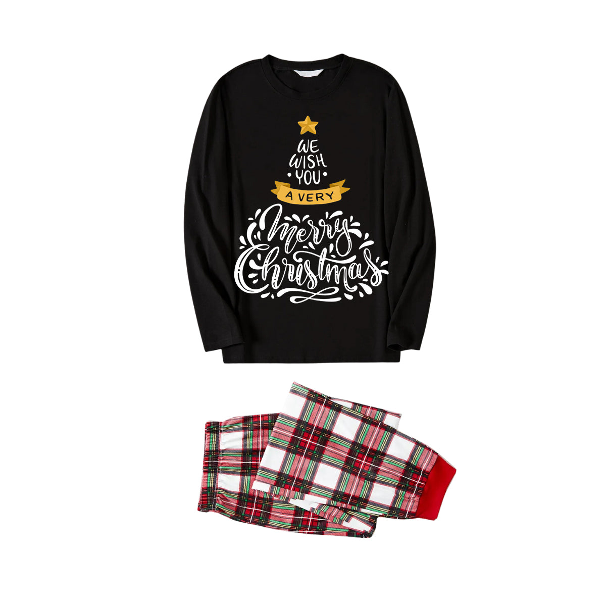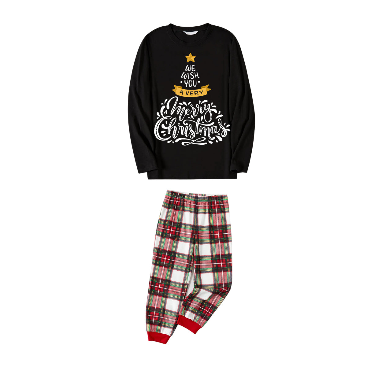 Get ready to cozy up in style with our ''2024 Christmas Tree Pattern "We Wish You" Black Long Sleeve with Comfortable Red and Green Plaid Pants Family Matching Pajamas'', perfect for the festive season. This adorable ensemble is designed for the whole family, including your beloved furry friend.