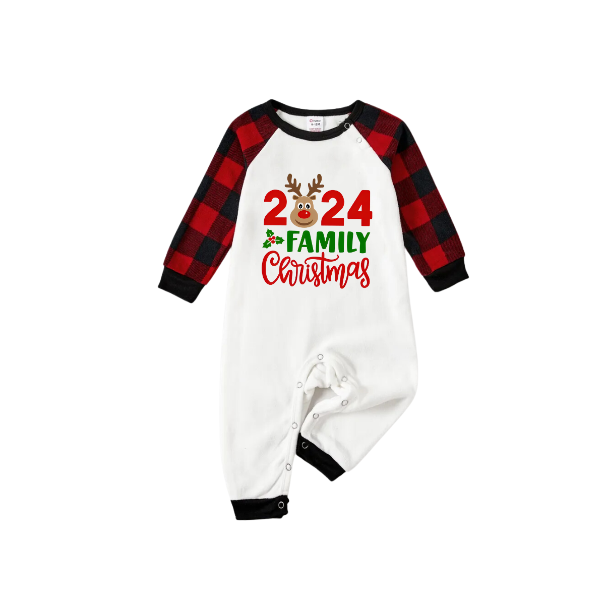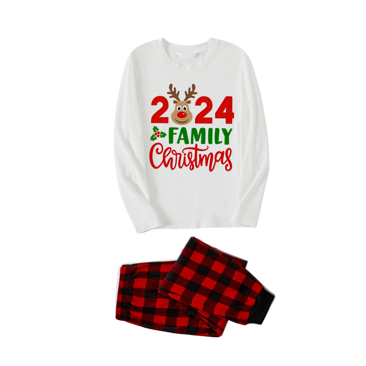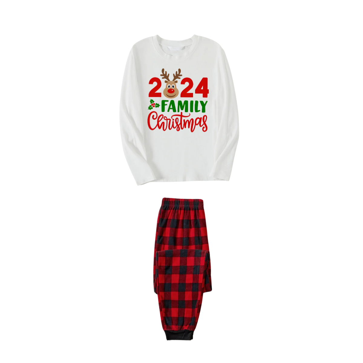 "2024 Family Christmas" and Deer Printed Red & Black Plaid Family Matching Pajamas