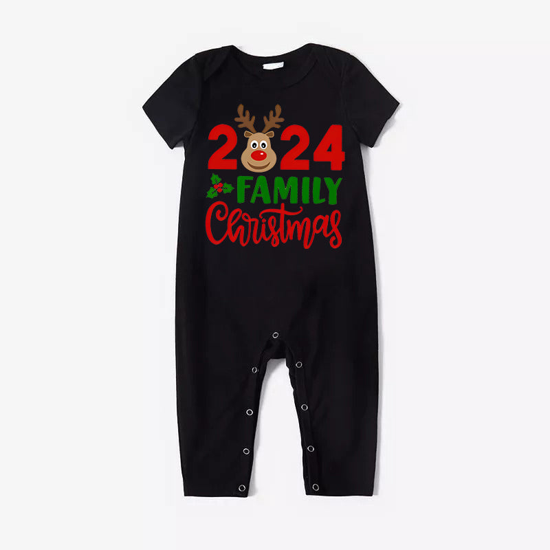 Get ready to cozy up in style with our ""2024 Family Christmas" Moose Letter Prints Black Short Sleeve with Red & Black Plaid Pant Family Matching Pajamas", perfect for the festive season. This adorable ensemble is designed for the whole family, including your beloved furry friend.