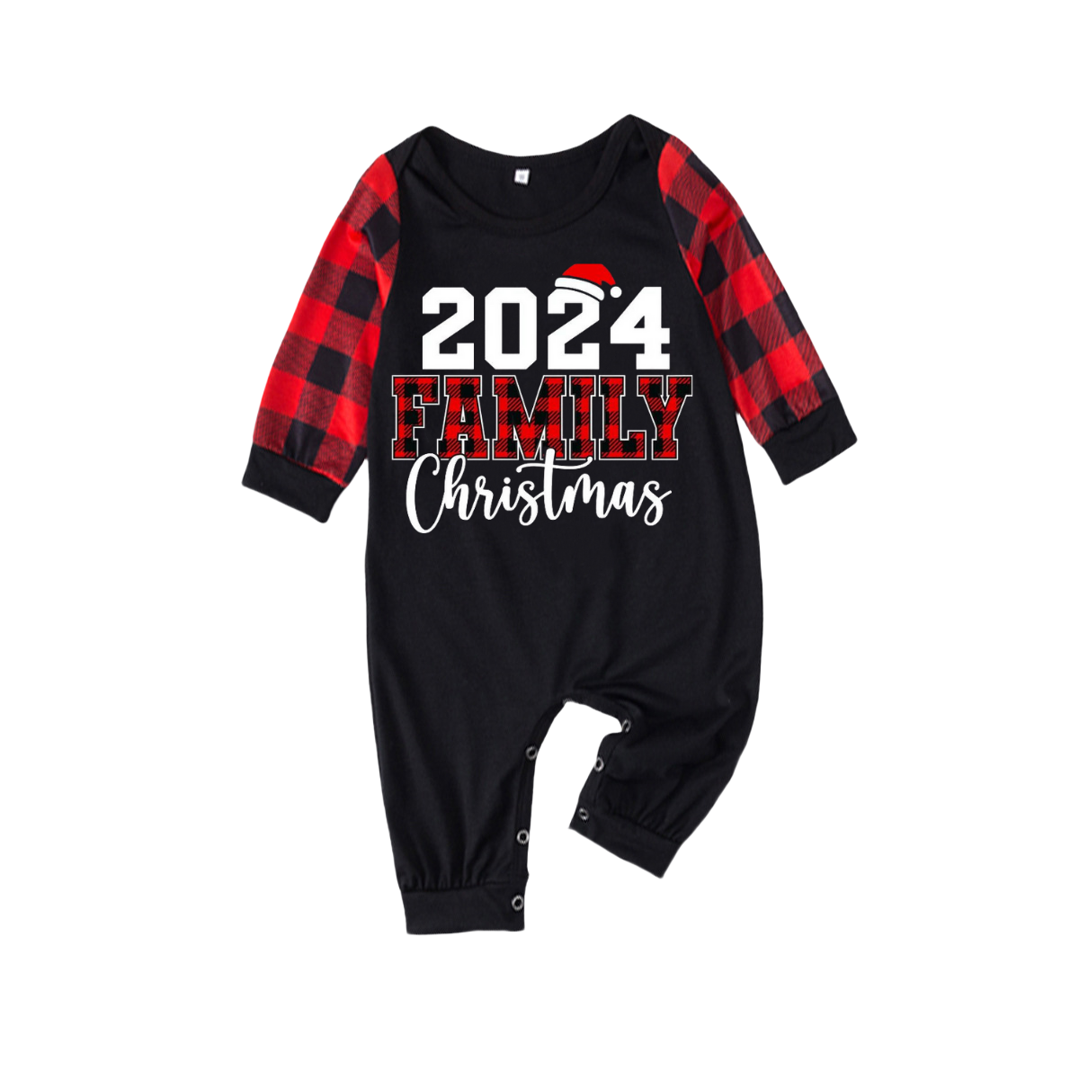"2024 Family Christmas" Text Print Black & Red Plaid Christmas Matching Pajamas