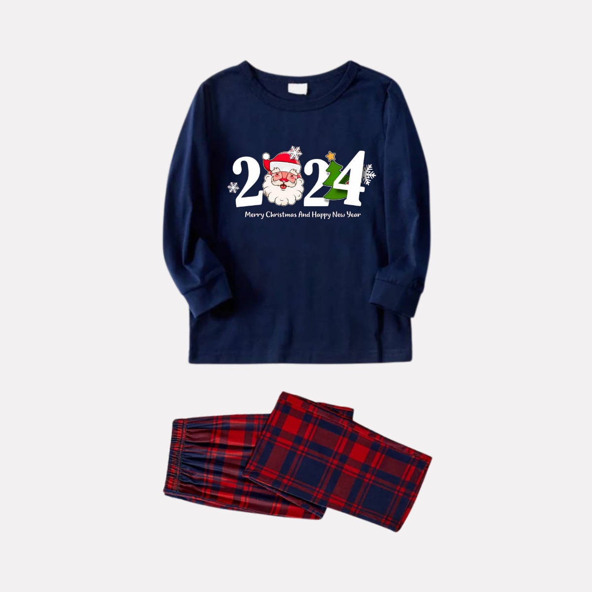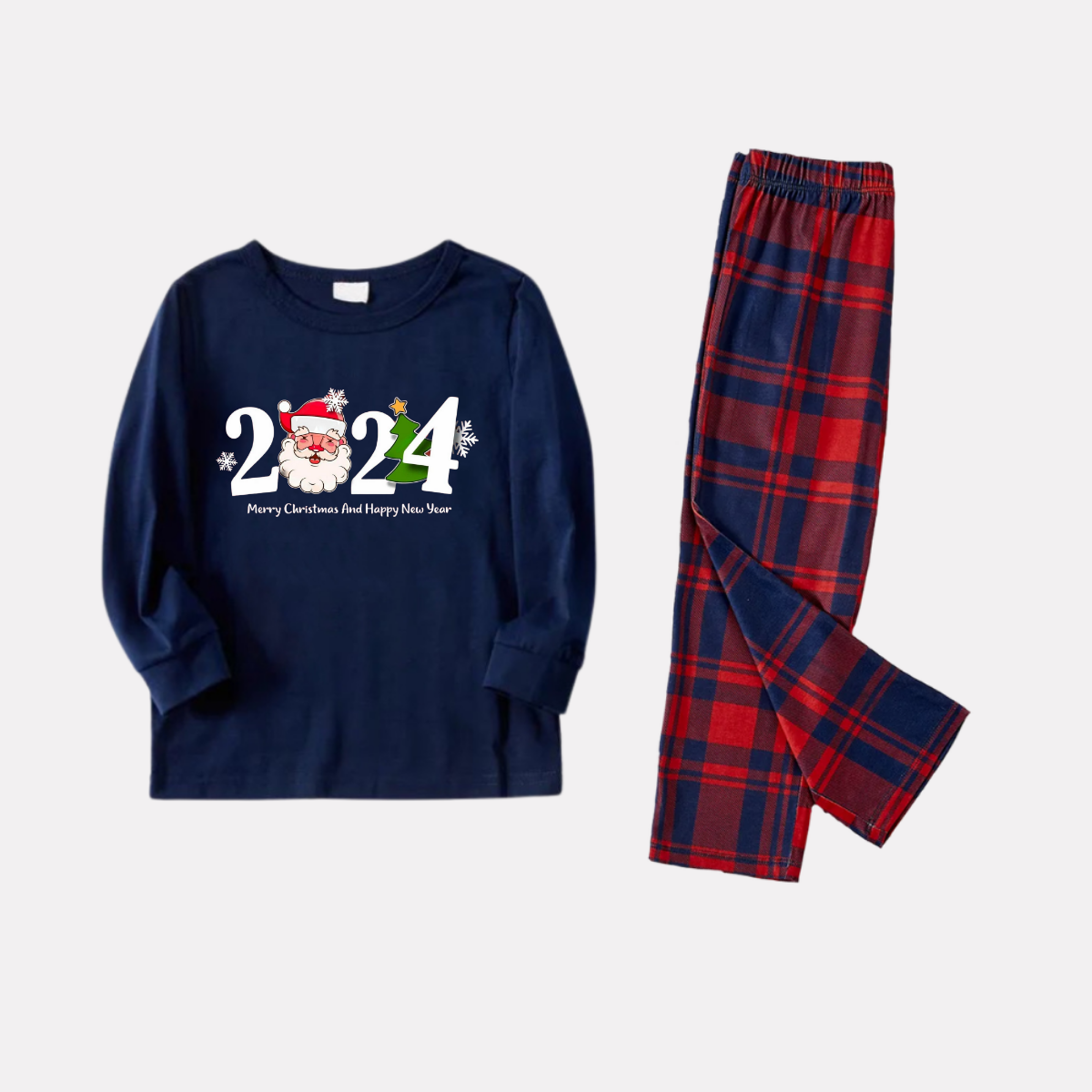 Get ready to cozy up in style with our "2024 Santa Claus Prints Blue Long Sleeves Top with Red & Blue Plaid Pants Family Matching Pajamas", perfect for the festive season. This adorable ensemble is designed for the whole family, including your beloved furry friend.