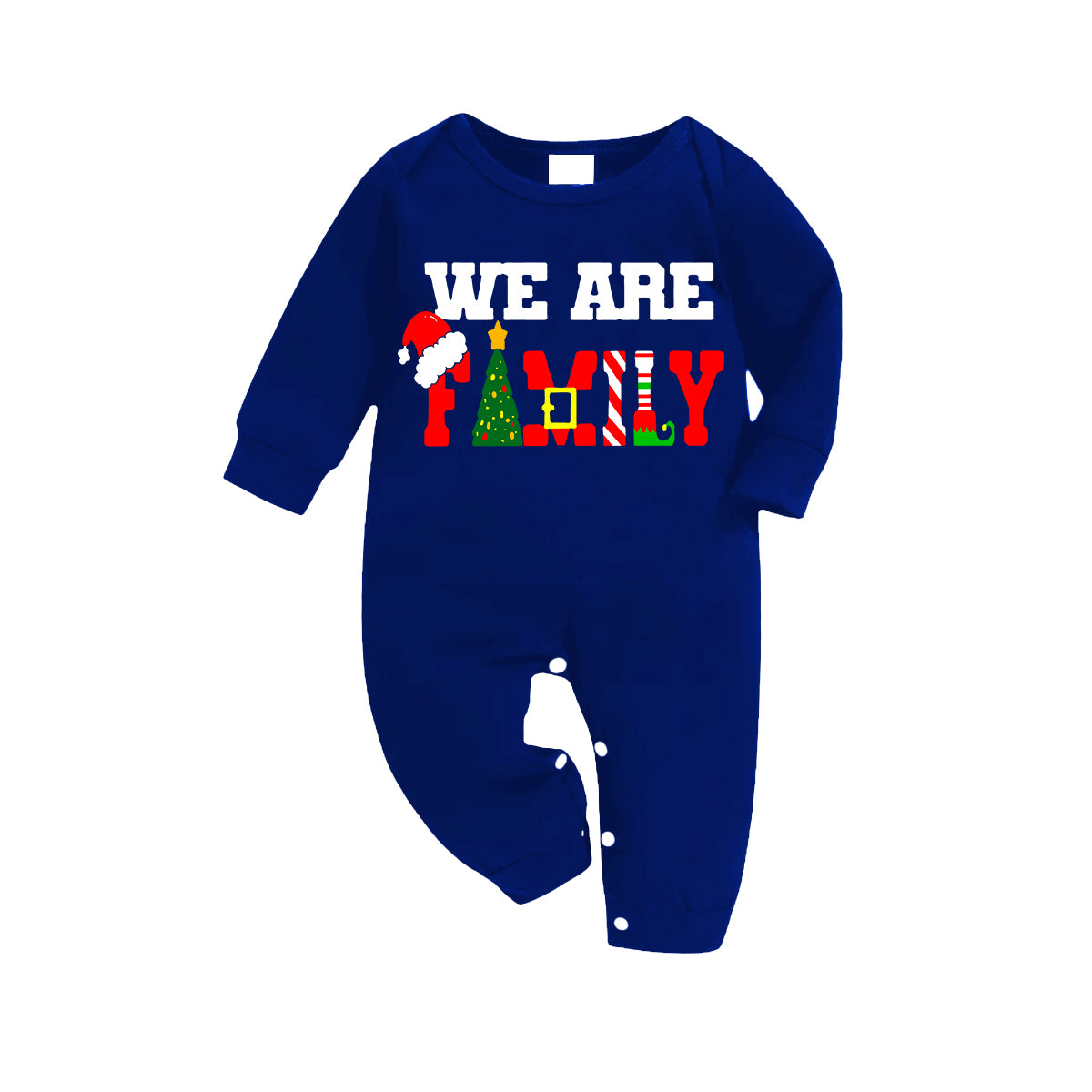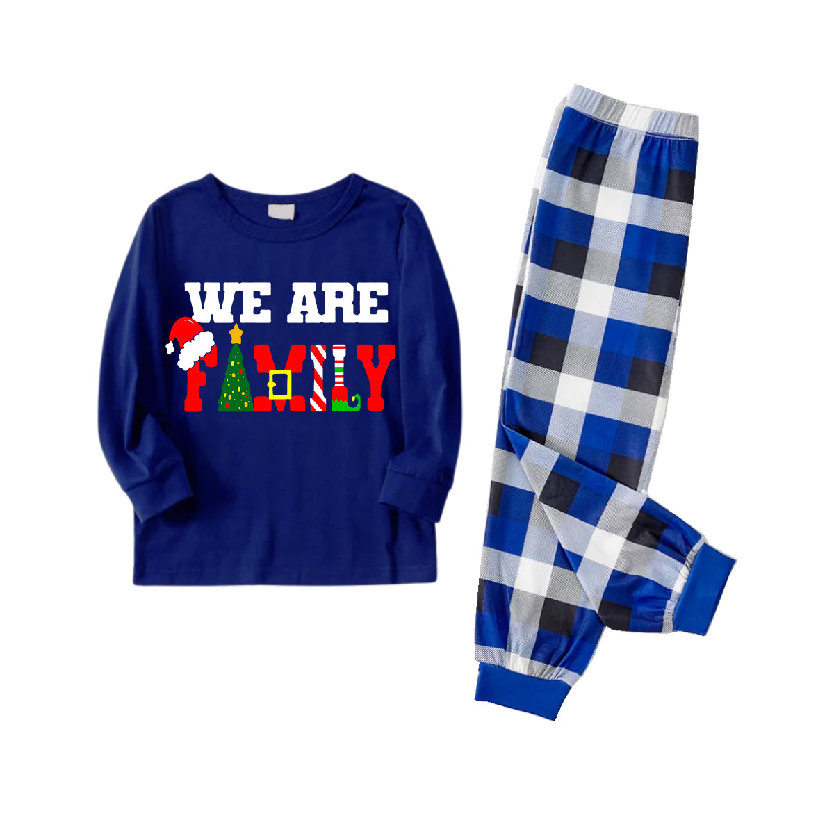 Celebrate the holidays in style with our family"2024 "We Are Family" Christmas Prints Contrast Blue Long Sleeve with Blue and White Plaid Pants Family Matching Pajamas". Featuring a festive green cartoon character with a Santa hat pattern on a white top with contrast black long sleeves, this set is paired with cozy green and black plaid pants. Designed for comfort and warmth, these pajamas are made from soft, breathable fabric that's perfect for festive family gatherings, holiday photos, or cozy nights at home. Bring your family together and make the season extra special with these charming matching pajamas.
