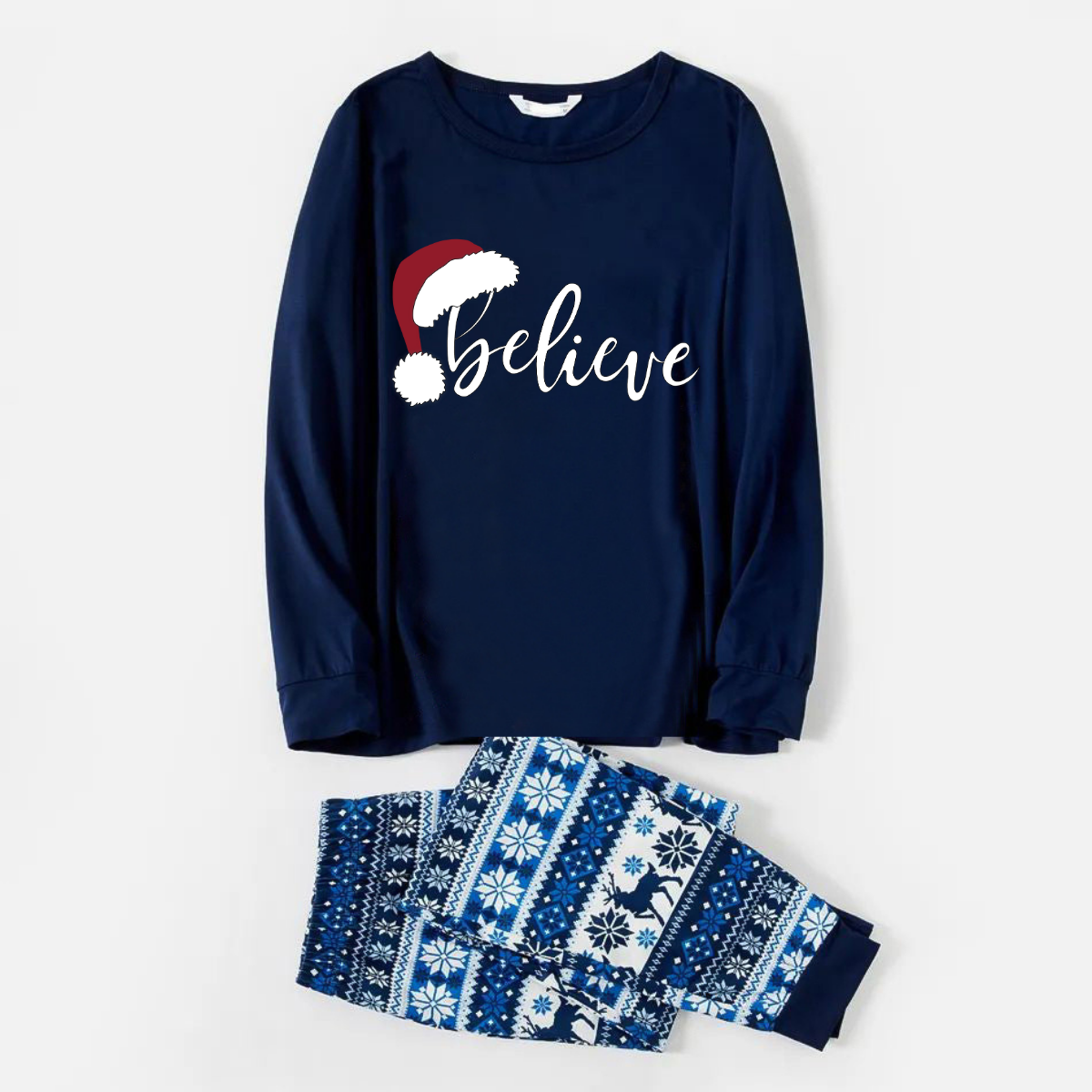"Believe" Print Blue Family Christmas Matching Pajamas