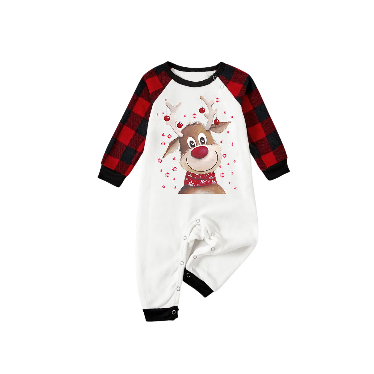 Get ready to cozy up in style with our ''Brown Cute Christmas Elk Pattern 2024 White Long Sleeve with Black&Red Plaid Pants Family Matching Pajamas'', perfect for the festive season. This adorable ensemble is designed for the whole family, including your beloved furry friend.