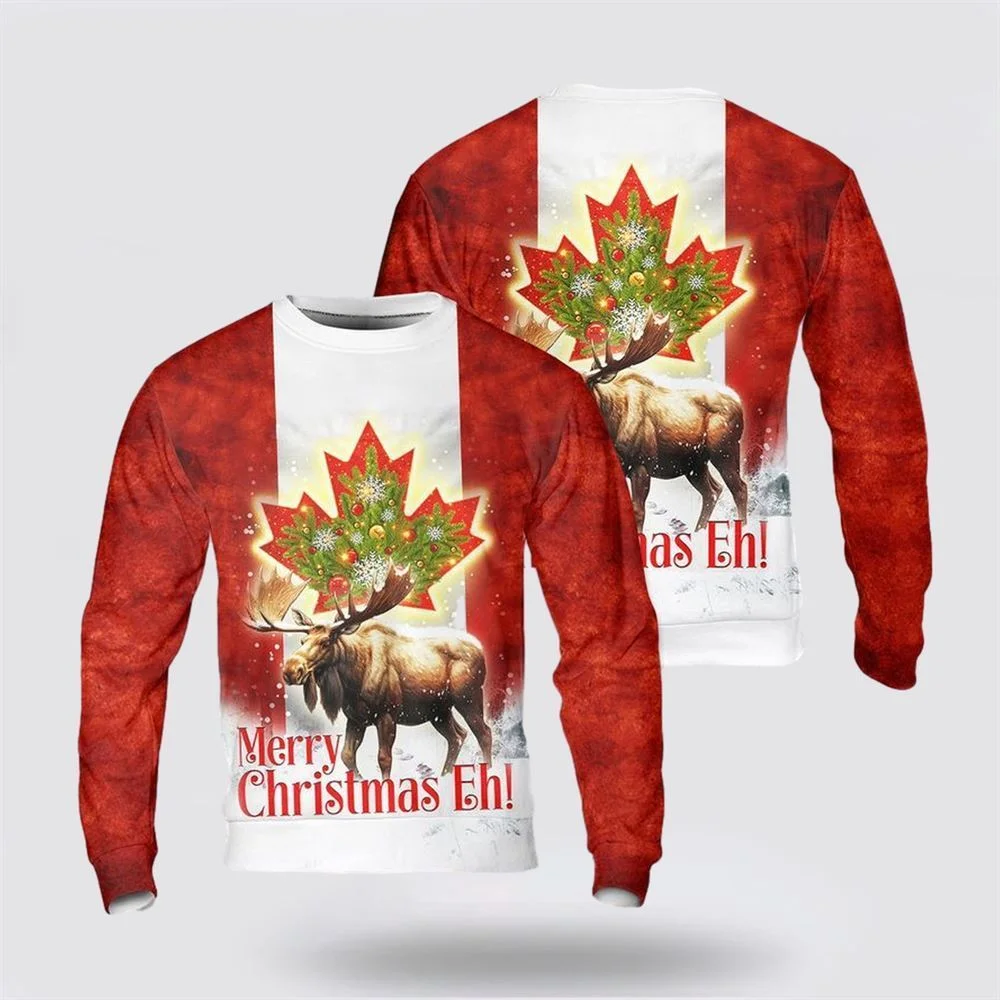 Canada Merry Christmas Eh Canada Moose Ugly Christmas Sweater, Farm Sweater, Christmas Gift, Best Winter Outfit Christmas is the perfect gift for everyone, from kids to adults. With many funny and whimsical designs, this sweater is sure to make everyone laugh.