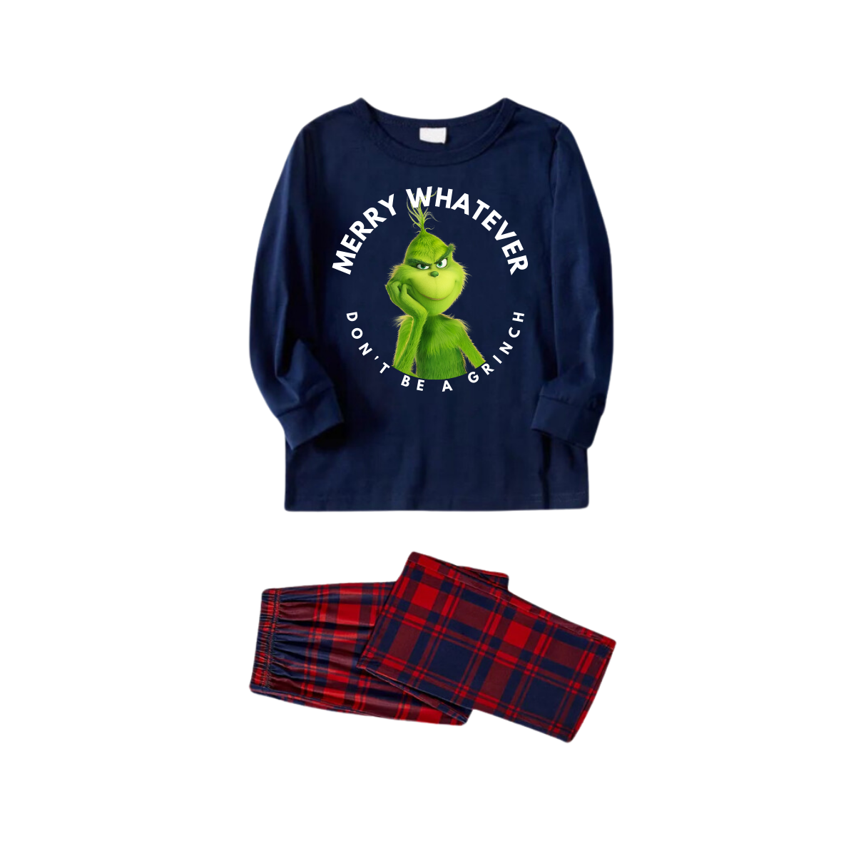 Cartoon Pattern and Christmas Slogan Printed Blue Top Red&Blue Plaid Pants Family Matching Pajamas