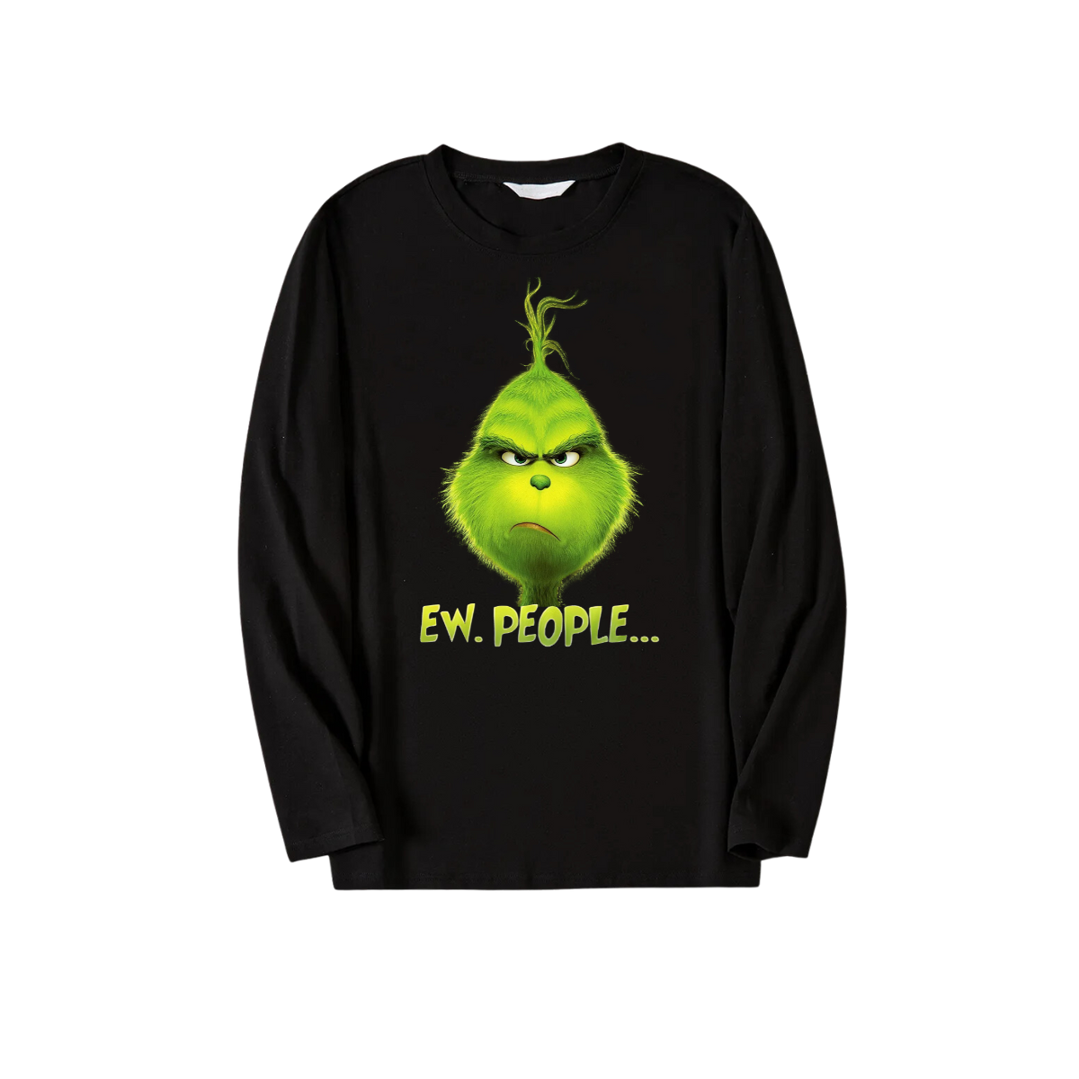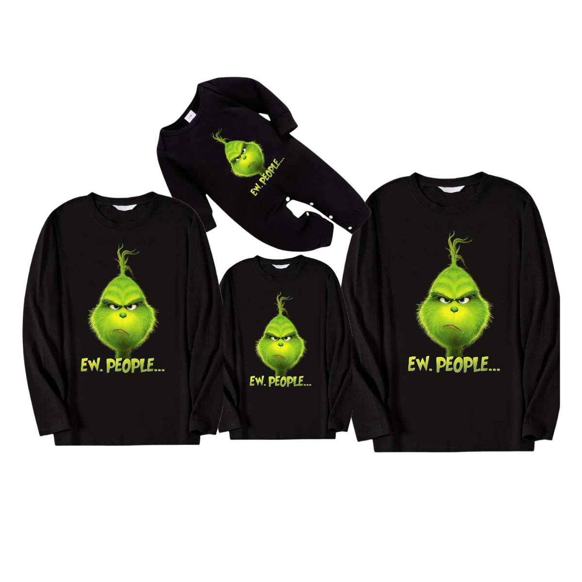 Get ready to cozy up in style with our "Christmas Cartoon Pattern and EW People Print Black Long Sleeve Top with Blue & Black Plaid Family Matching Pajamas", perfect for the festive season. This adorable ensemble is designed for the whole family, including your beloved furry friend.