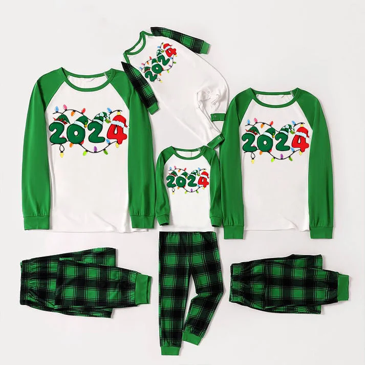 Get ready to cozy up in style with our "Christmas "2024" Letter Print Green Rotator Cuff Top With Green & Black Plaid Family Matching Pajamas", perfect for the festive season. This adorable ensemble is designed for the whole family, including your beloved furry friend.