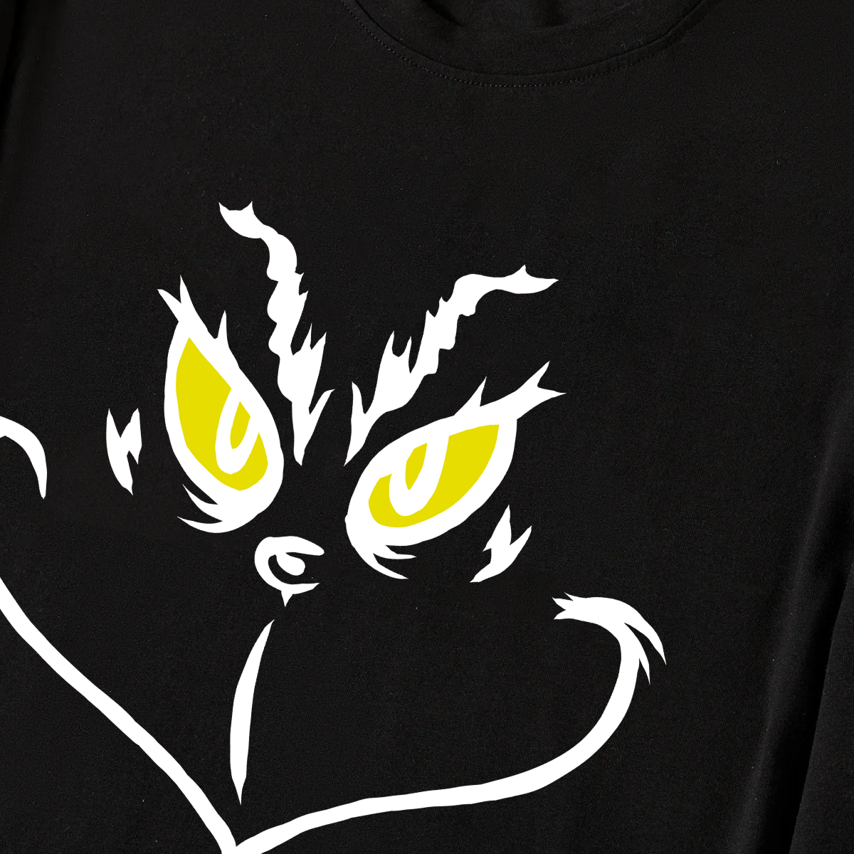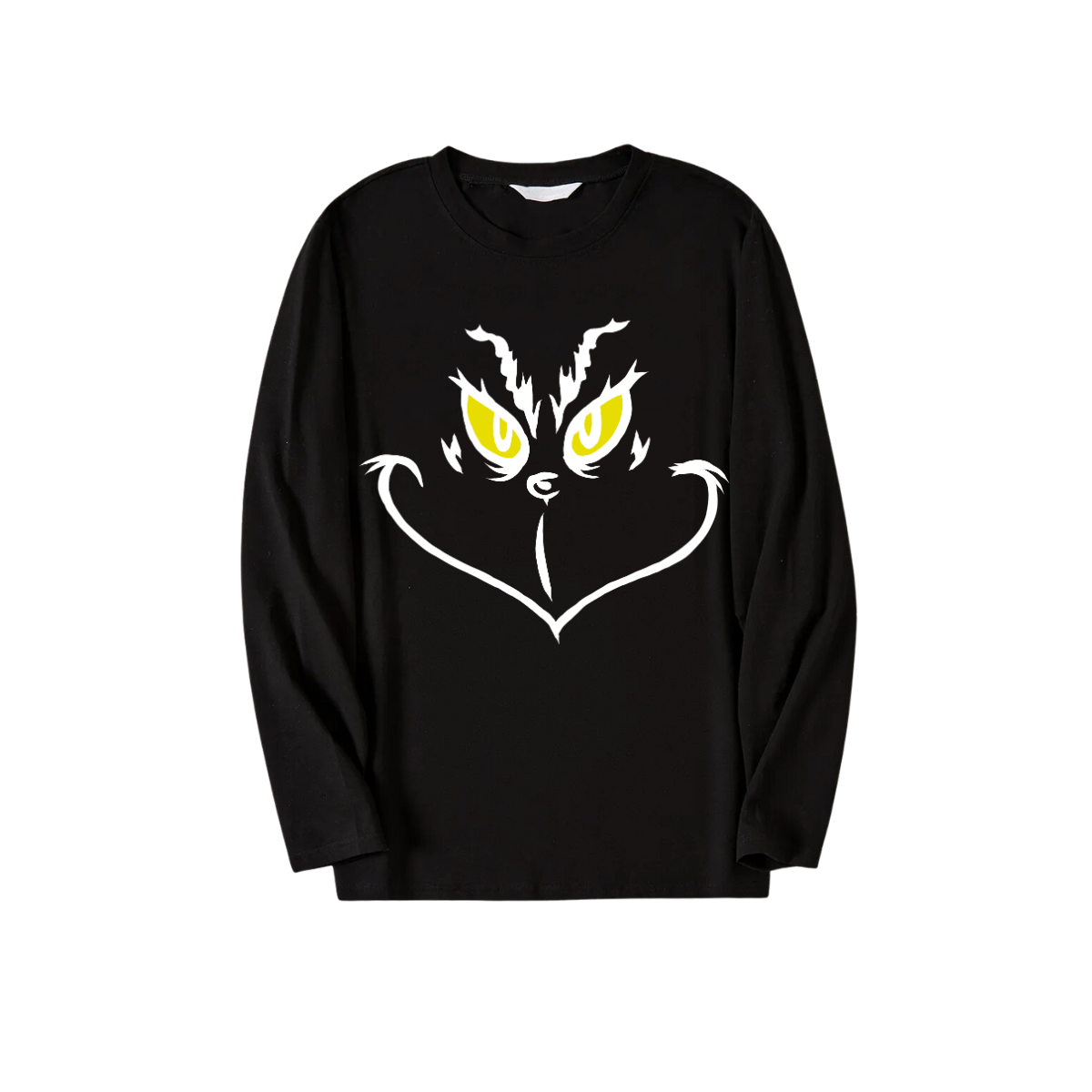 Get ready to cozy up in style with our "Christmas Cartoon Face Print Black Long Sleeve Top with Green and Black Plaid Family Matching Pajamas", perfect for the festive season. This adorable ensemble is designed for the whole family, including your beloved furry friend.