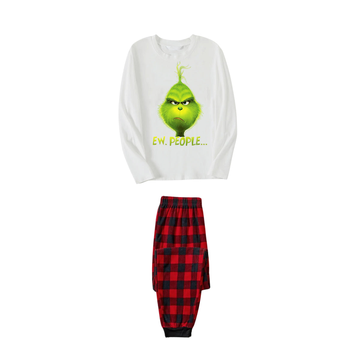 Get ready to cozy up in style with our ''Christmas Cartoon Pattern and EW People Print White Long Sleeve with Black&Red Plaid Pants Family Matching Pajamas'', perfect for the festive season. This adorable ensemble is designed for the whole family, including your beloved furry friend.