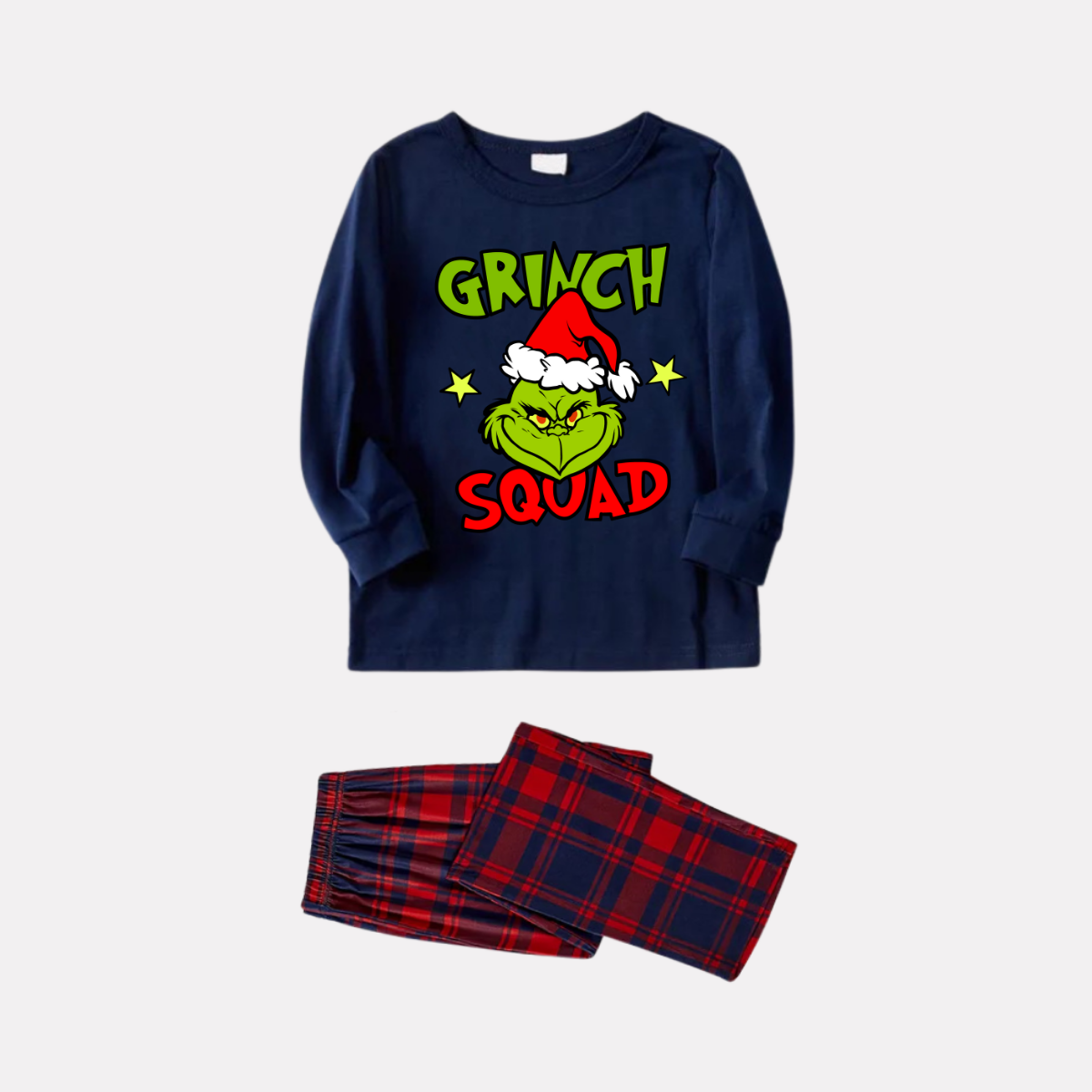 Get ready to cozy up in style with our "Christmas Cartoon Pattern and Letter Print Blue Long Sleeve Top with Red & Blue Plaid Family Matching Pajamas)", perfect for the festive season. This adorable ensemble is designed for the whole family, including your beloved furry friend.