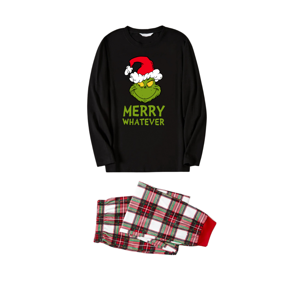 Get ready to cozy up in style with our "Christmas Tree and Text Print Black Long Sleeve Top with Red & White & Green Plaid Family Matching Pajamas", perfect for the festive season. This adorable ensemble is designed for the whole family, including your beloved furry friend.