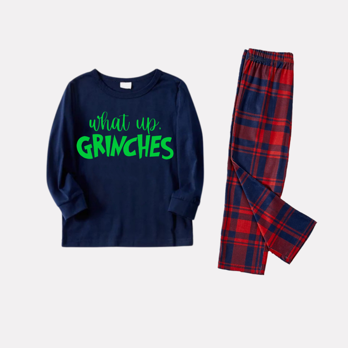 Get ready to cozy up in style with our "Christmas Antlers and Merry Christmas Print Blue Long Sleeve Top with Red & Blue Plaid Family Matching Pajamas", perfect for the festive season. This adorable ensemble is designed for the whole family, including your beloved furry friend.