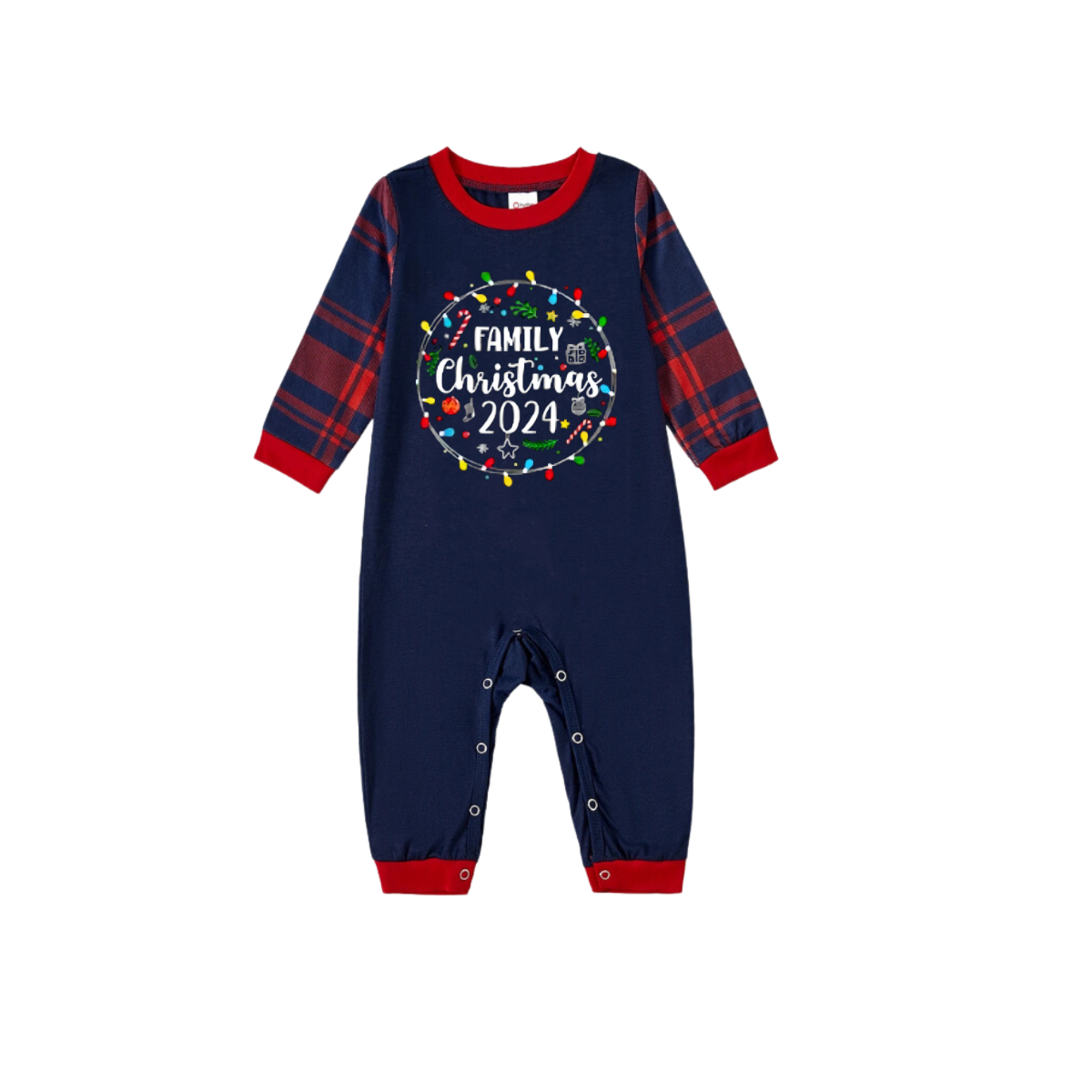 Christmas Light and "Family Christmas 2024" Printed Red and Blue Plaid Christmas Matching Pajamas