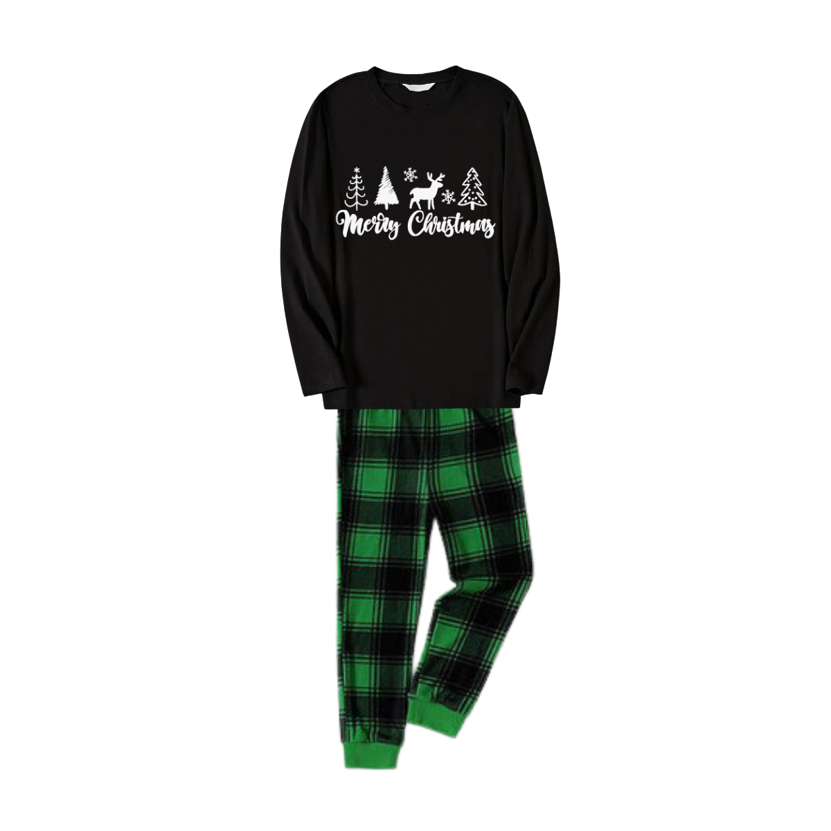 Get ready to cozy up in style with our "Christmas Tree and Elk Print Black Long Sleeve Top with Green and Black Plaid Family Matching Pajamas", perfect for the festive season. This adorable ensemble is designed for the whole family, including your beloved furry friend.