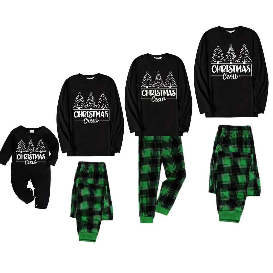 Get ready to cozy up in style with our "Christmas Tree and "Merry Christmas" Print Black Long Sleeve Top with Green and Black Plaid Family Matching Pajamas", perfect for the festive season. This adorable ensemble is designed for the whole family, including your beloved furry friend.
