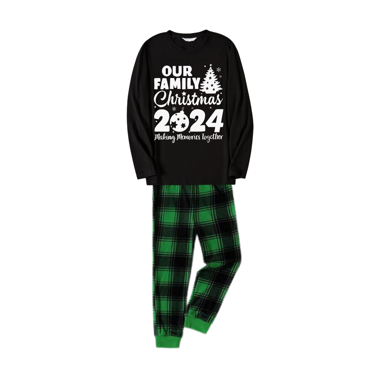 Get ready to cozy up in style with our "Christmas Tree & "Making Memories Together" 2024 Patterned Black Long Sleeve Top with Green and Black Plaid Family Matching Pajamas", perfect for the festive season. This adorable ensemble is designed for the whole family, including your beloved furry friend.