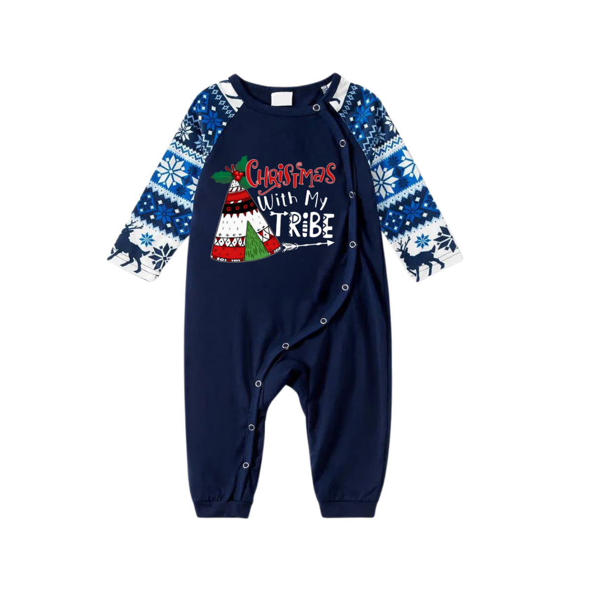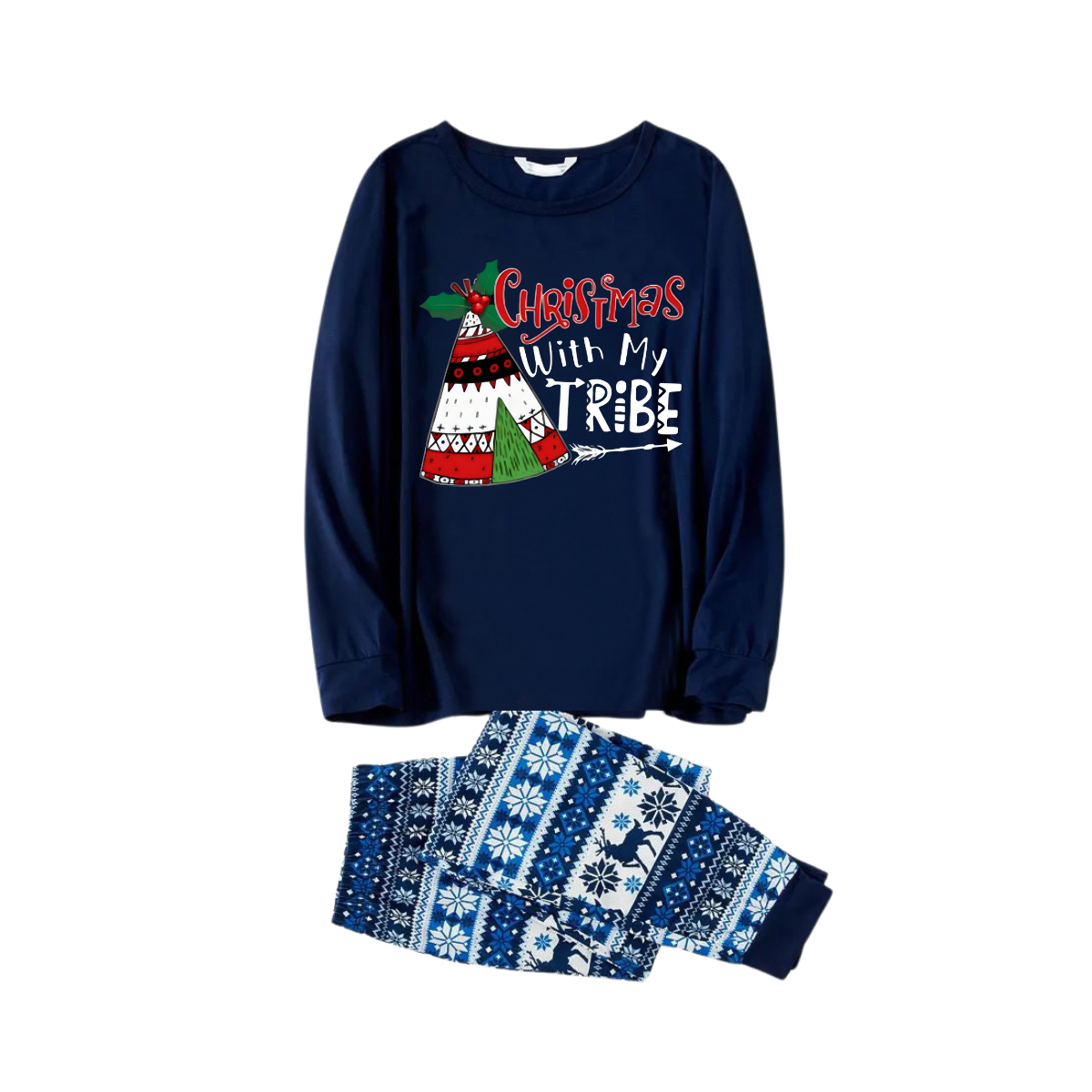 "Christmas With My Tribe" Pattern Ⅰ - Blue Family Christmas Matching Pajamas