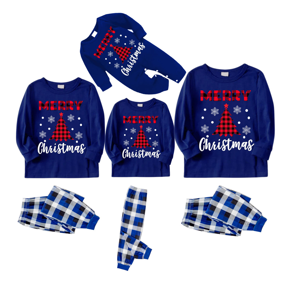 Get ready to cozy up in style with our '"Plaid Christmas Tree Pattern Blue Long Sleeves with Blue&White&Black Plaid Pants Family Matching Pajamas', perfect for the festive season. This adorable ensemble is designed for the whole family, including your beloved furry friend.