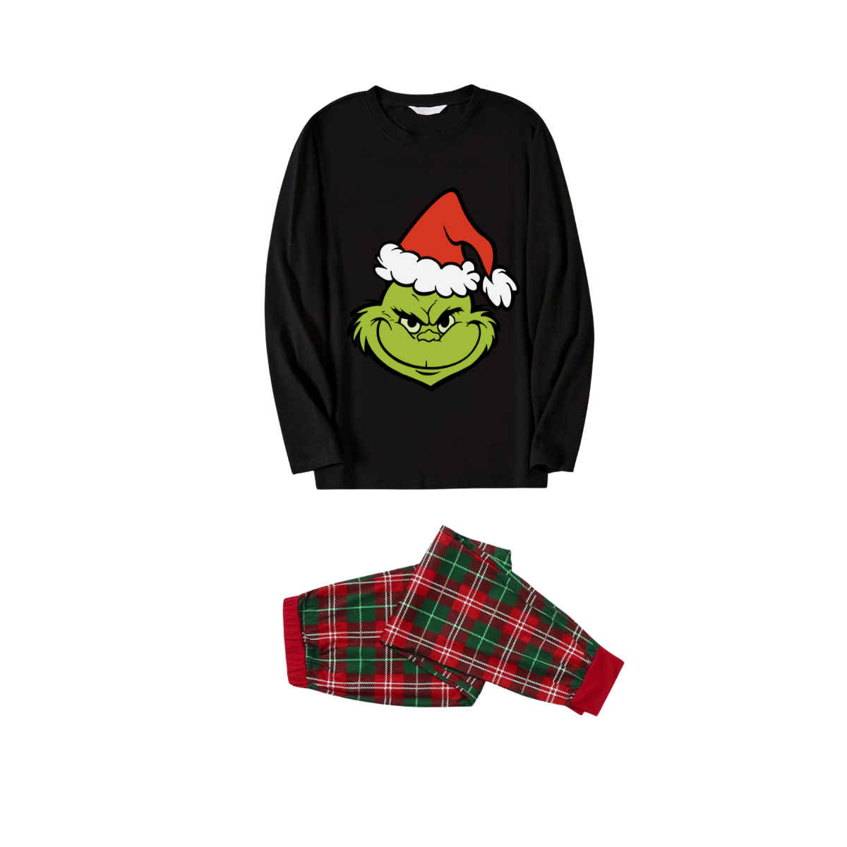 Cute Cartoon Face Pattern Black Top Red and Green Plaid Family Matching Pajamas