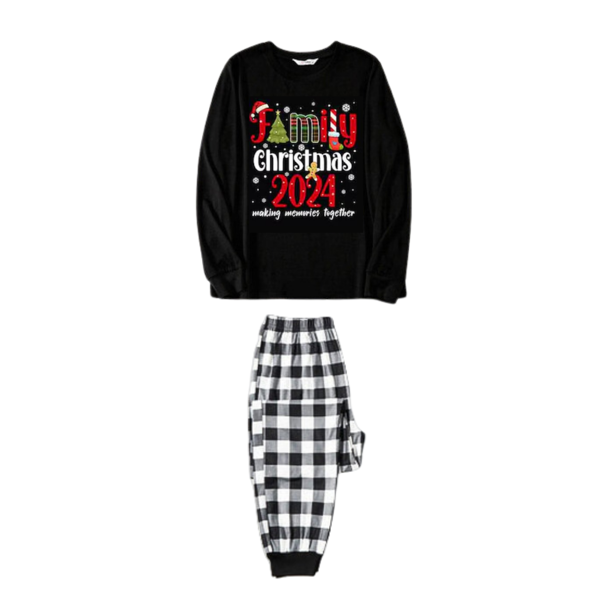Cute "Family Christmas 2024" Text Print Black and White Plaid Family Matching Pajamas
