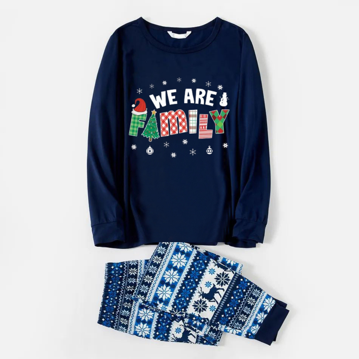 Cute We are Family Print Blue Family Christmas Matching Pajamas