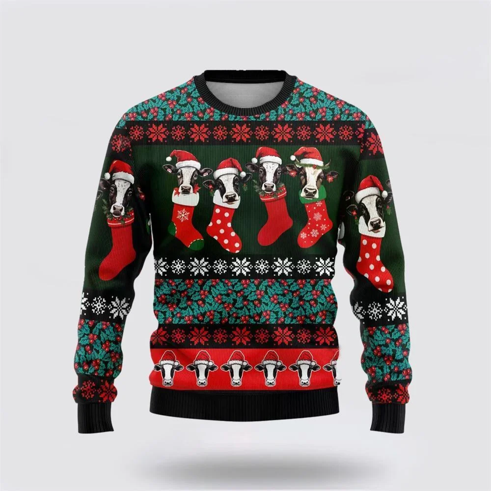 Dairy Cow Stocking Ugly Christmas Sweater, Farm Sweater, Christmas Gift, Best Winter Outfit Christmas is the perfect gift for everyone, from kids to adults. With many funny and whimsical designs, this sweater is sure to make everyone laugh.