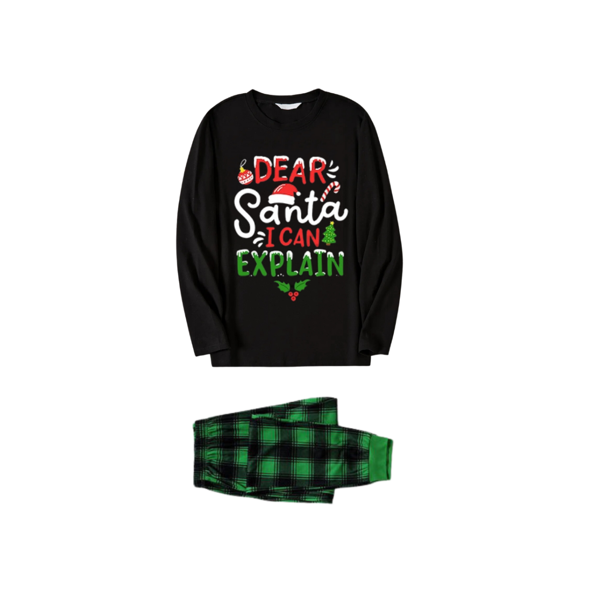 "Dear Santa I can Explain" Slogan Printed Black and Green Plaid Family Matching Pajamas