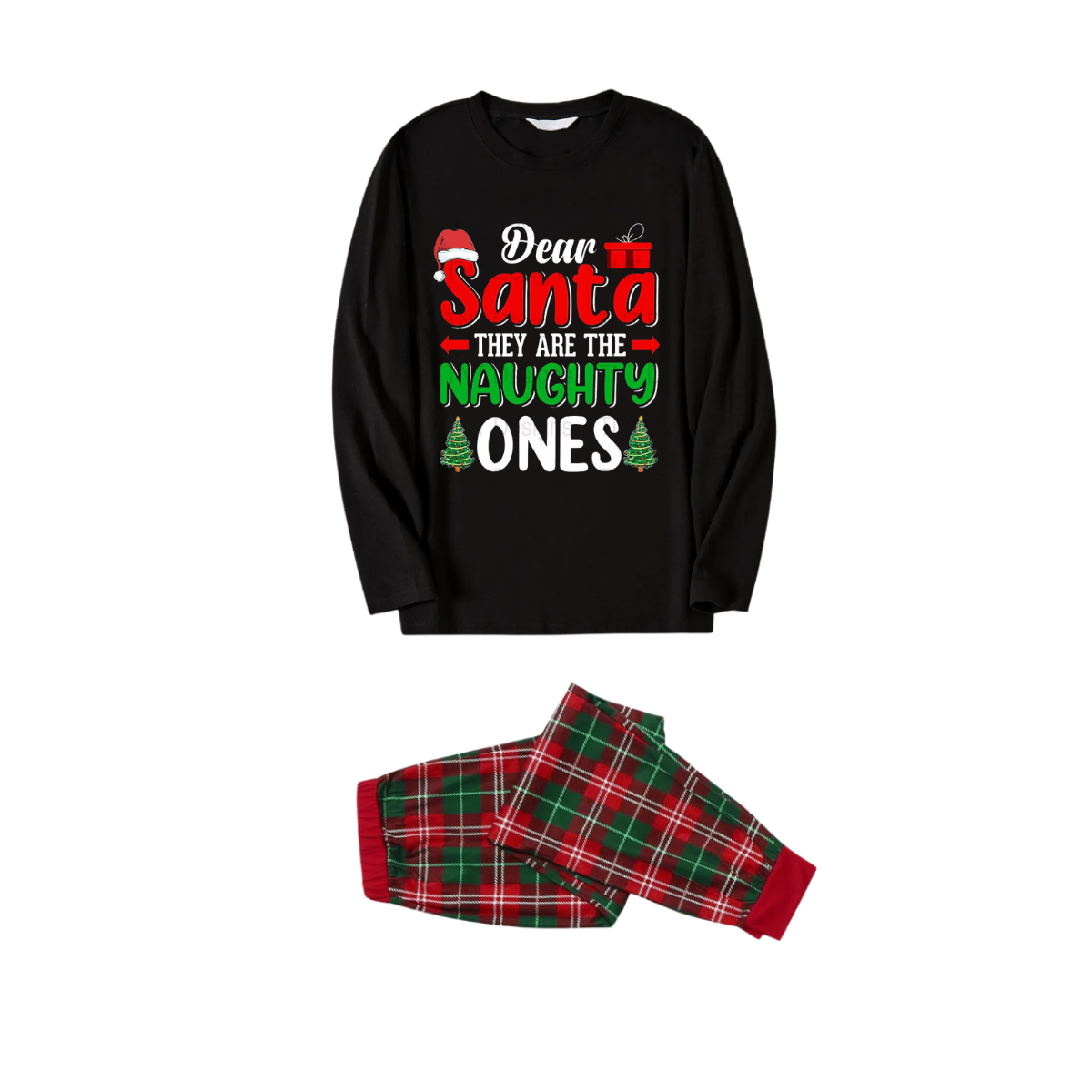 "Dear Santa They are The Naughty Ones" Slogan Printed Red and Green Plaid Family Matching Pajama