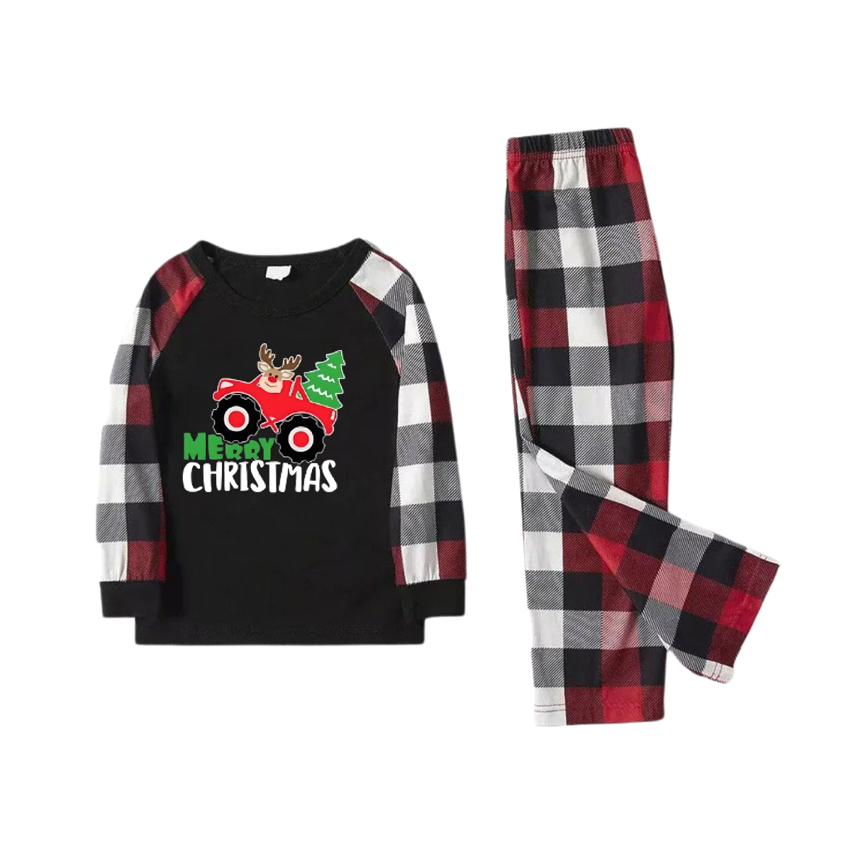 Driving Elk Cartoon Pattern Red&Black&White Plaid Matching Pajamas
