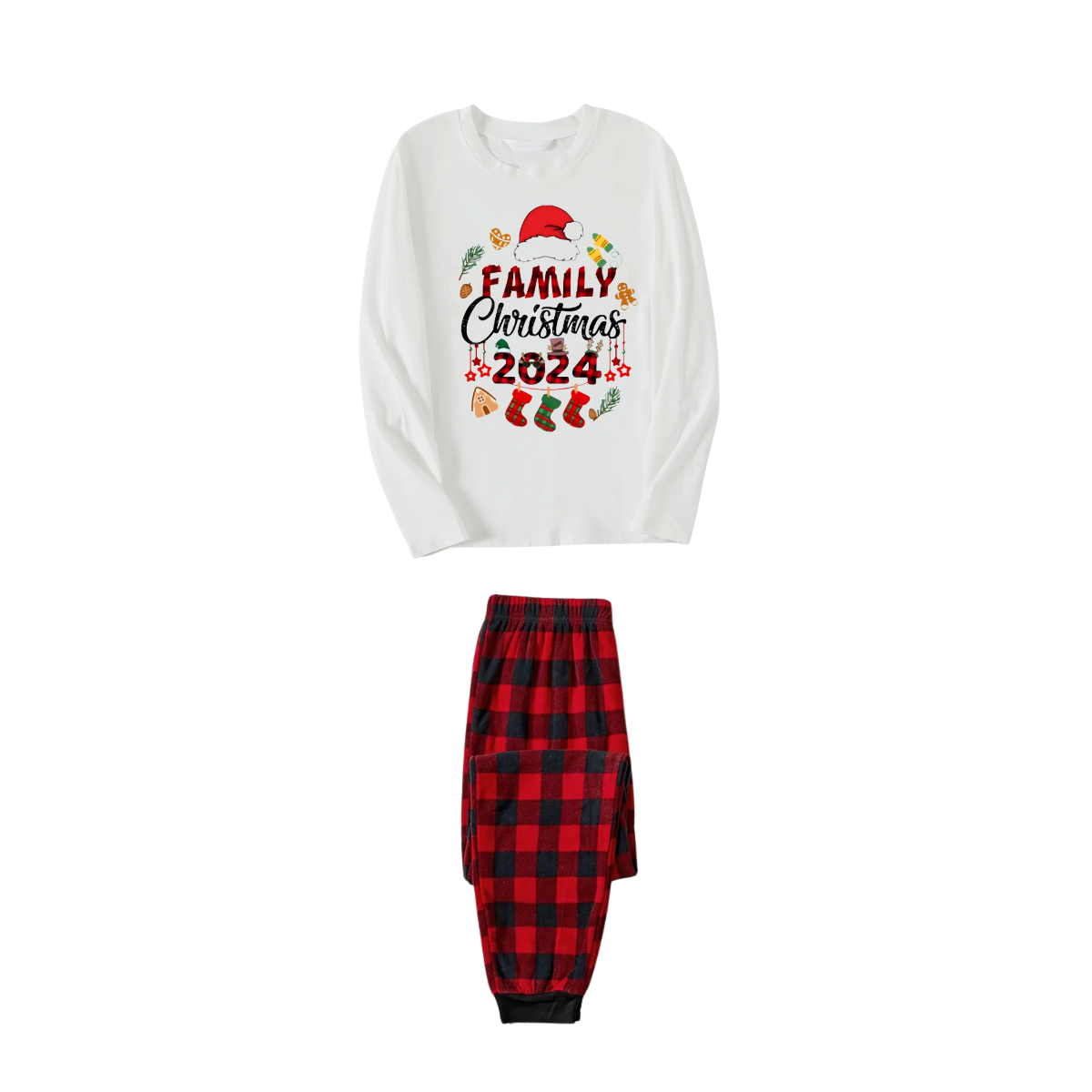 "Family Christmas 2024" and Christmas Pattern Printed Red & Black Plaid Family Matching Pajamas