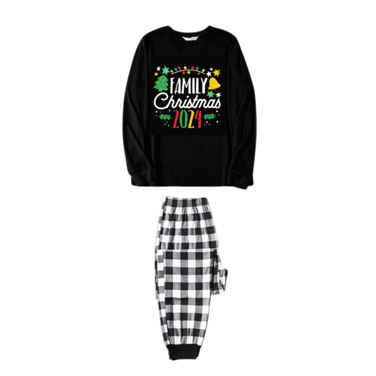 "Family Christmas 2024" and Joyful Pattern Prints Black and White Plaid Family Matching Pajamas