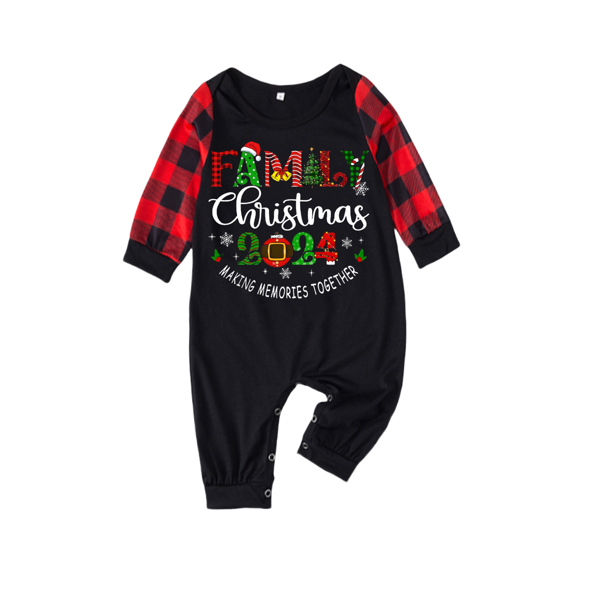 "Family Christmas 2024" Cute Print Black & Red Plaid Christmas Matching Pajamas