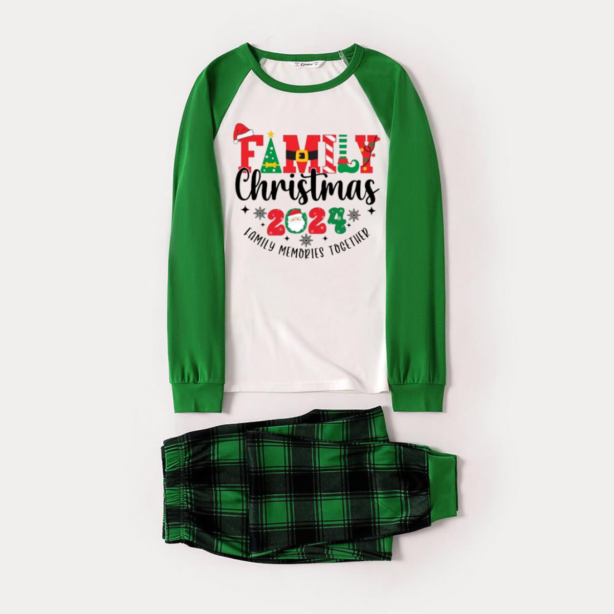 Family Christmas 2024 Family Memories Together Print Long Sleeve Top With Green & Black Plaid Christmas Family Matching Pajamas