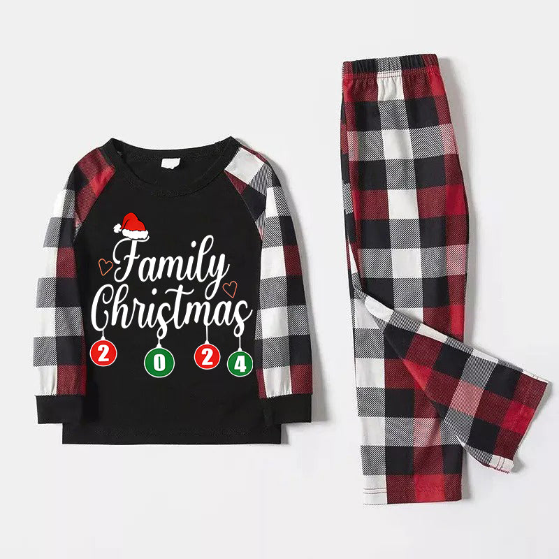 Get ready to cozy up in style with our ""Family Christmas" 2024 Letter Print Red & Black & Grey & White Plaid Family Matching Pajamas", perfect for the festive season. This adorable ensemble is designed for the whole family, including your beloved furry friend.