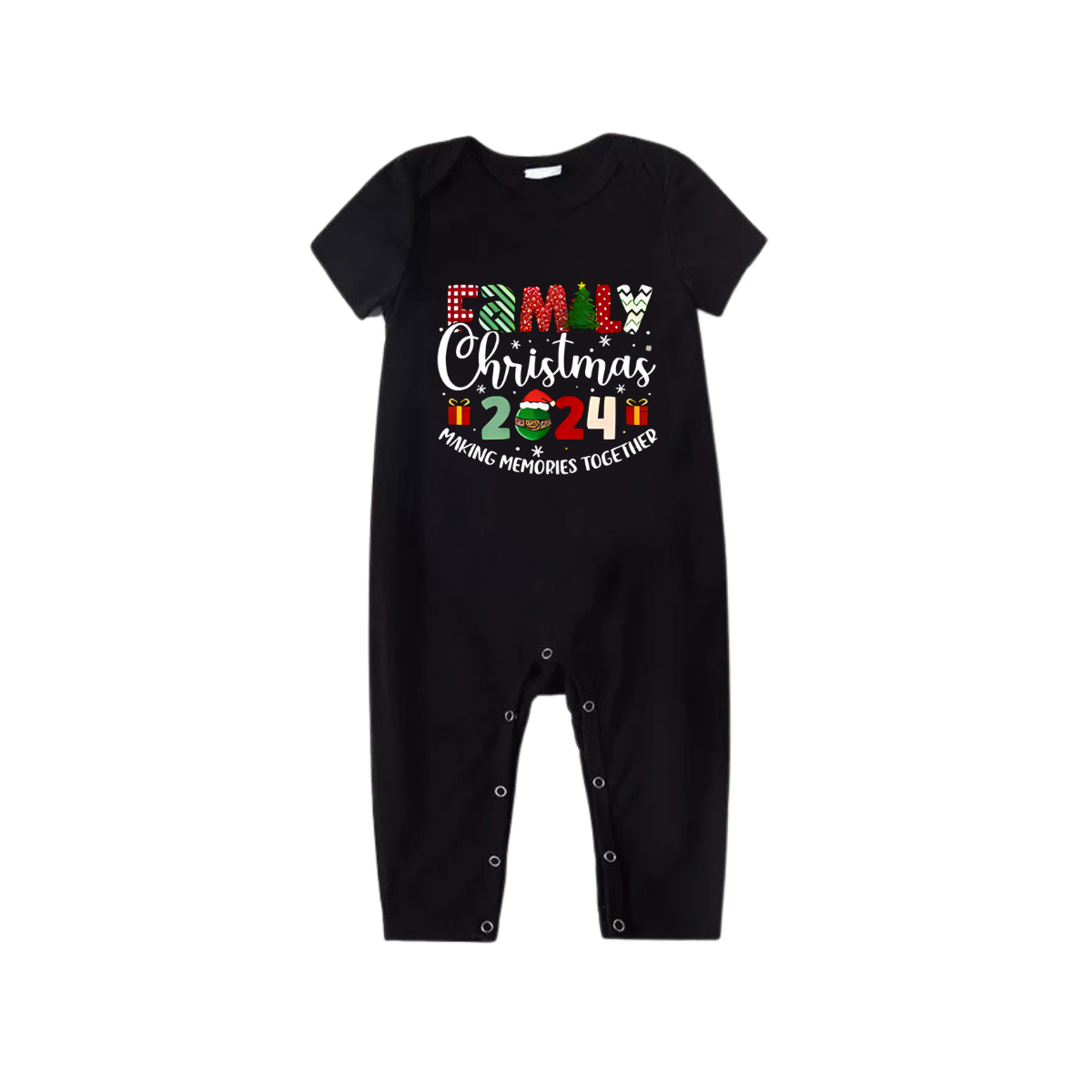 "Family Christmas 2024 Making Memories Together" Pattern Ⅰ- Black Short Sleeve with Red & Black Plaid Pant Family Matching Pajamas