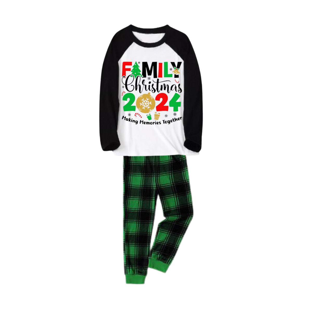 "Family Christmas 2024 Making Memories Together" Printed Green and Black Plaid Christmas Family Pajamas