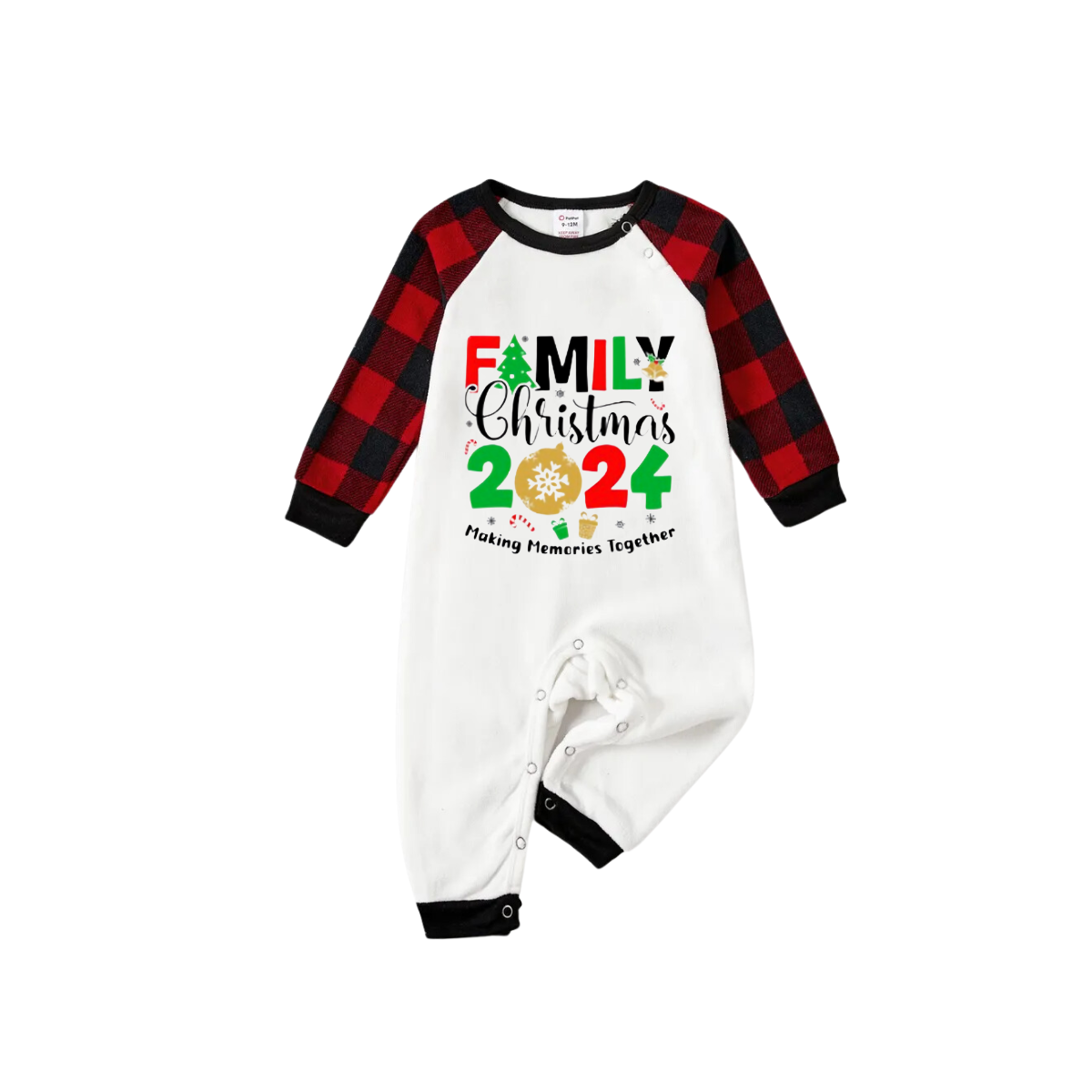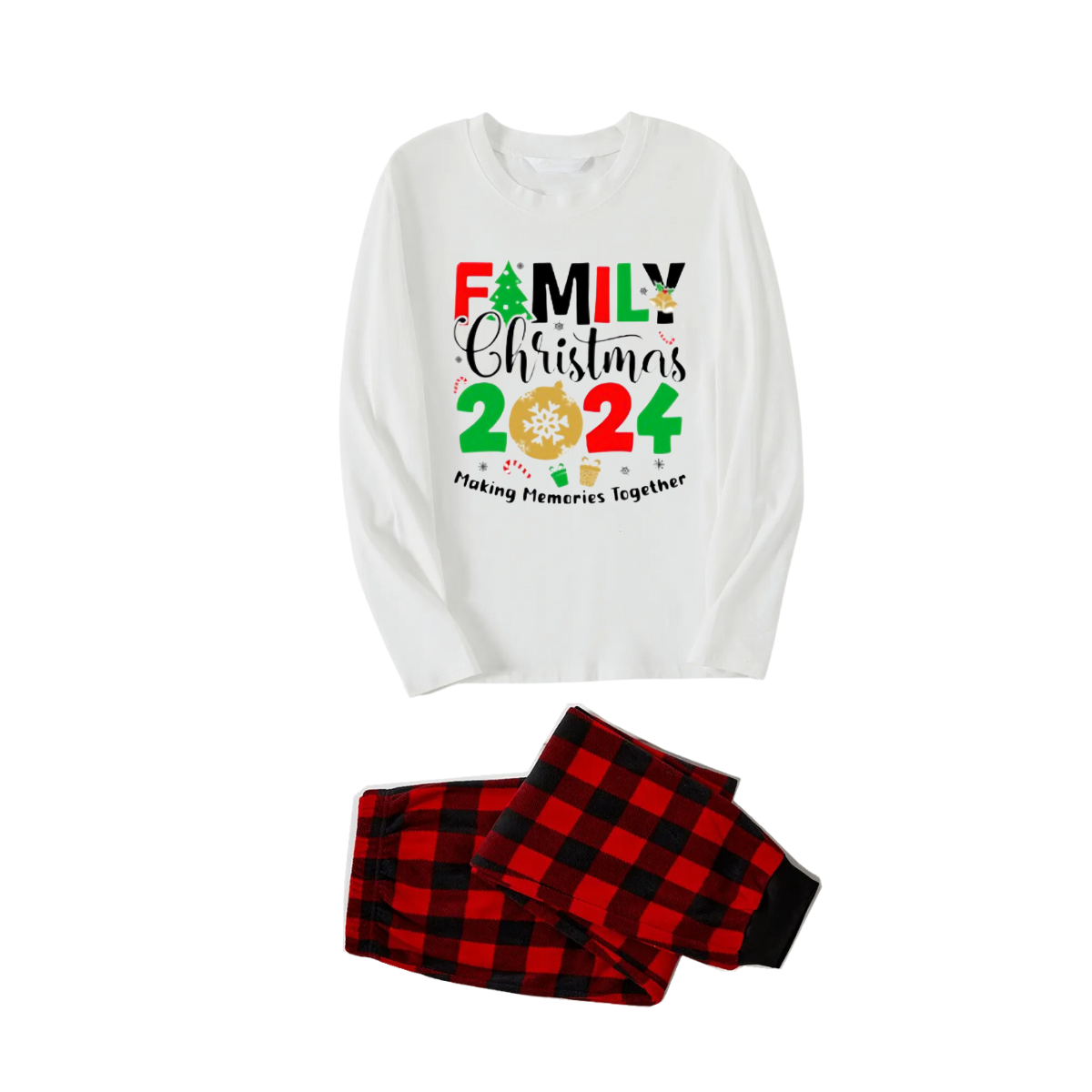 "Family Christmas 2024 Making Memories Together" Printed Red & Black Plaid Family Matching Pajamas