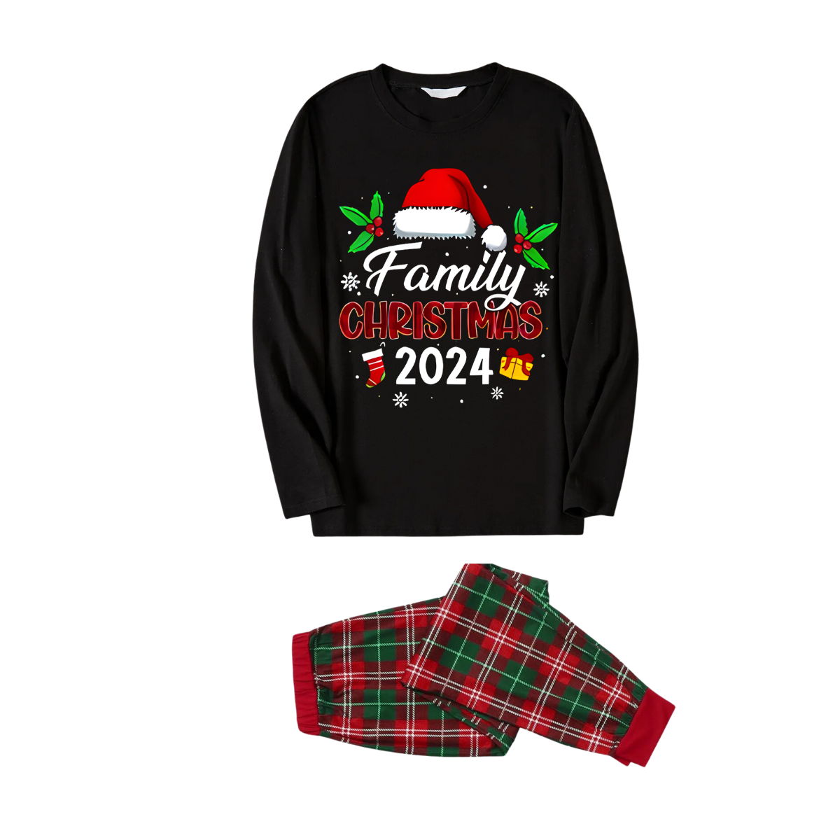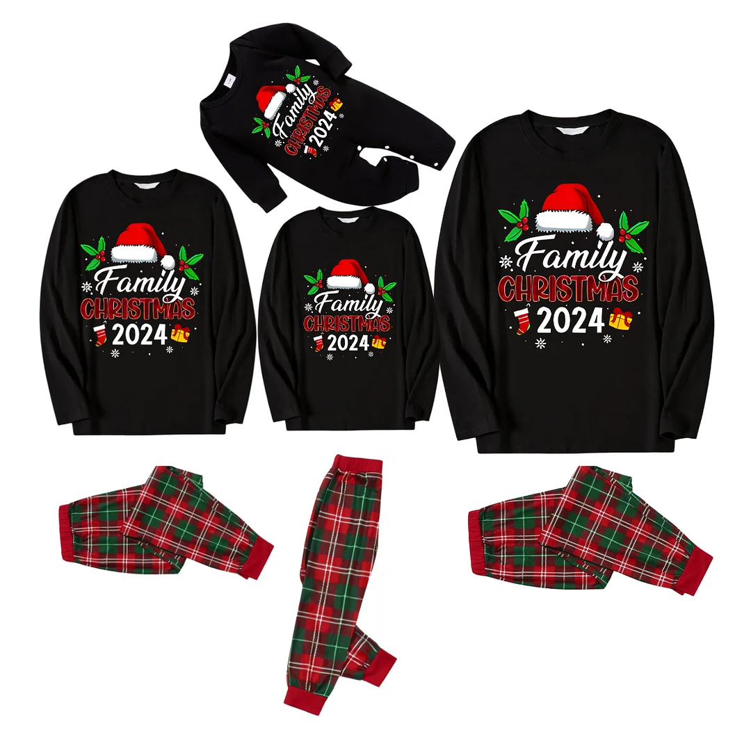 Get ready to cozy up in style with our '"Merry Christmas" With Baubles - Black Long Sleeves with Green&Red&White Plaid Pants Family Matching Pajamas', perfect for the festive season. This adorable ensemble is designed for the whole family, including your beloved furry friend.