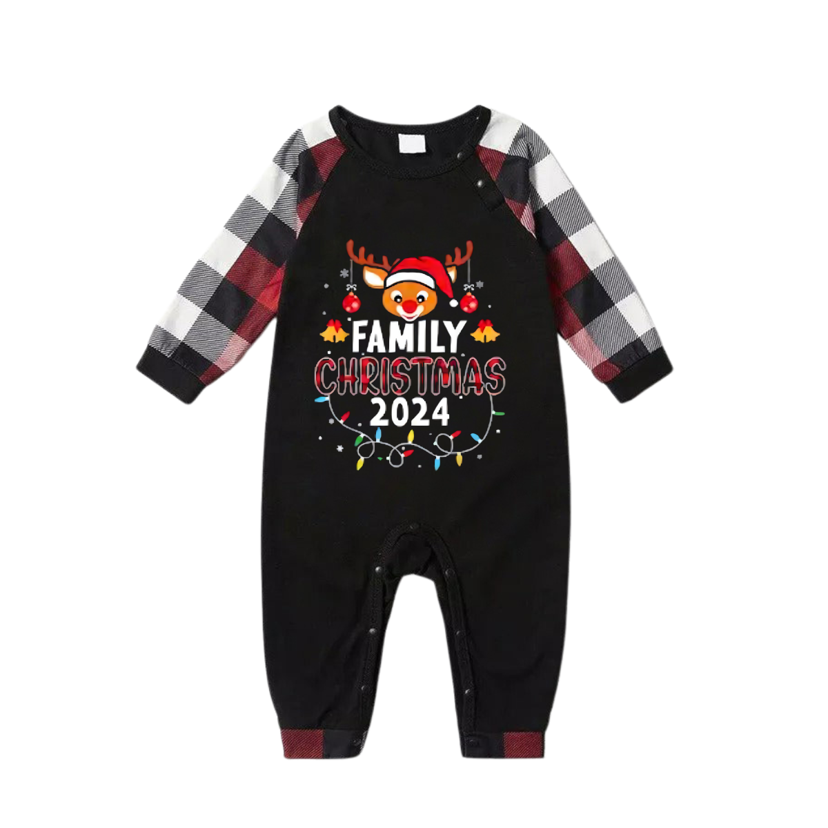 "Family Christmas 2024" with Elk Pattern- Red&Black&White Plaid Matching Pajamas