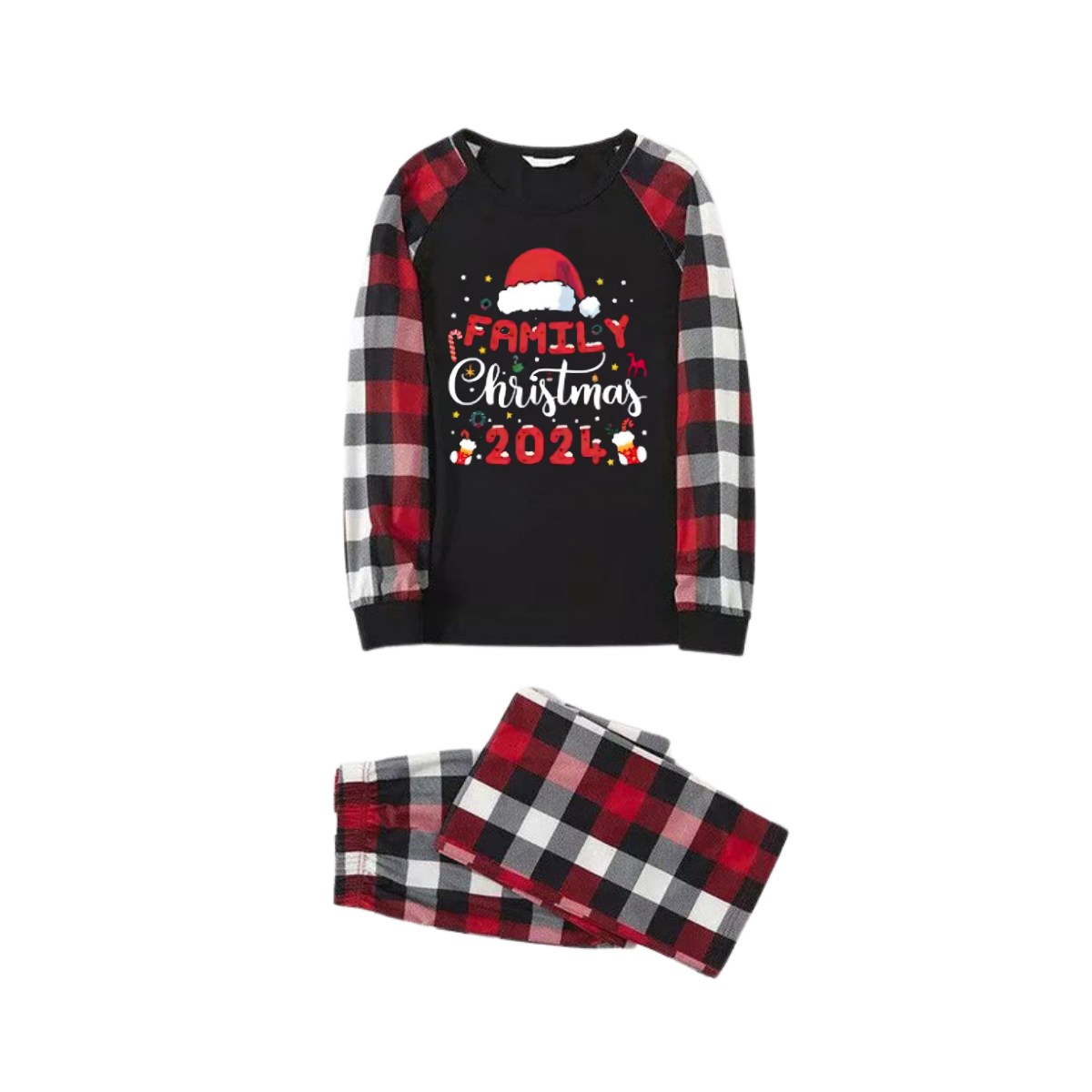 "Family Christmas 2024" with Santa Hat Pattern Ⅱ- Red&Black&White Plaid  Matching Pajamas