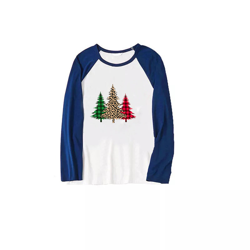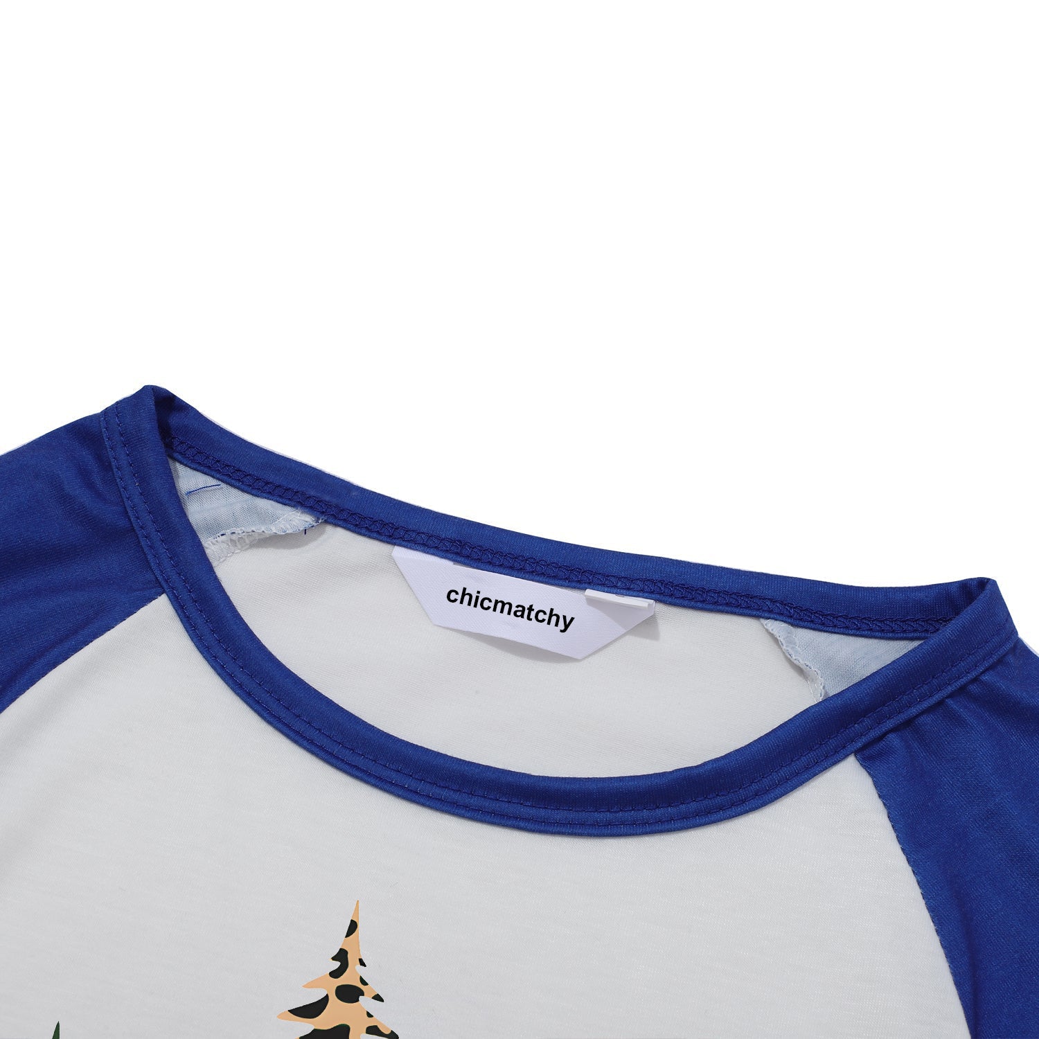Family Christmas Shirts Buffalo Plaid Christmas Tree Patterned Casual Long Sleeve Sweatshirts Contrast Blue & White Top and Black and Blue Plaid Pants Family Matching Pajamas Sets
