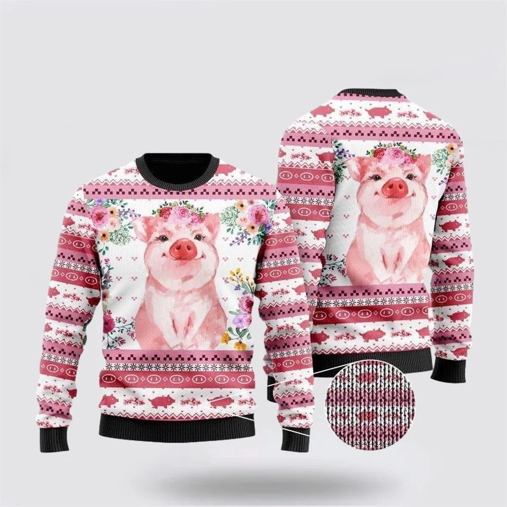 Floral Pink Piggy Ugly Christmas Sweater, Farm Sweater, Christmas Gift, Best Winter Outfit Christmas is the perfect gift for everyone, from kids to adults. With many funny and whimsical designs, this sweater is sure to make everyone laugh.