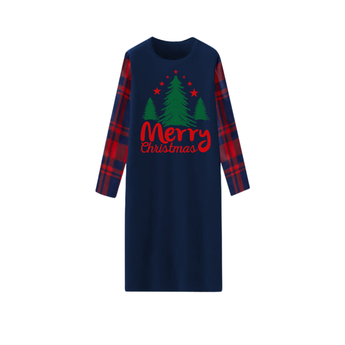 Green Christmas Tree "Merry Christmas" Letter Print Blue Long Sleeve Top with Red & Blue Plaid Couple Matching Pajamas