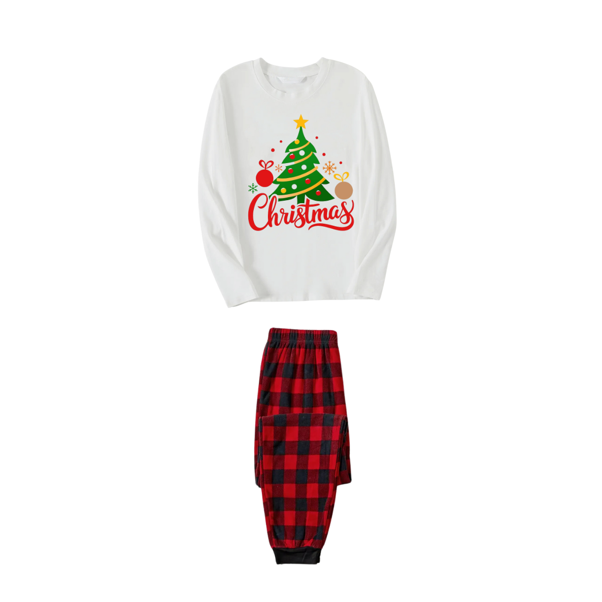 Get ready to cozy up in style with our Christmas Tree Printed 2024 White Long Sleeve Top and Red & Black Plaid Pants Family Matching Pajamas", perfect for the festive season. This adorable ensemble is designed for the whole family, including your beloved furry friend.