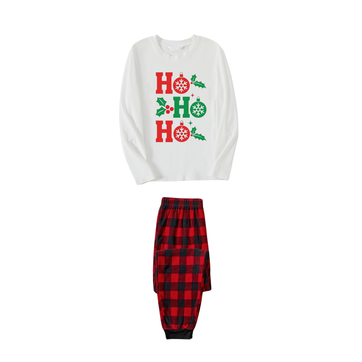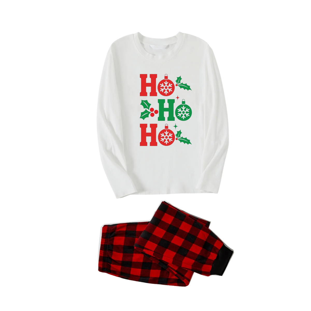 Get ready to cozy up in style with our ""HO HO HO" Letter Christmas 2024 White Long Sleeve Top with Red & Black Plaid Family Matching Pajamas", perfect for the festive season. This adorable ensemble is designed for the whole family, including your beloved furry friend.