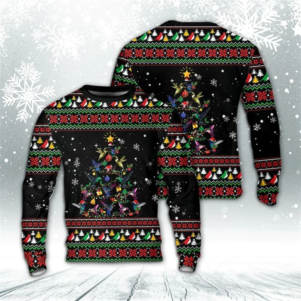 Hummingbird Christmas Tree AOP Ugly Christmas Sweater For Men And Women, Best Gift For Christmas, The Beautiful Winter Christmas Outfit is the perfect gift for everyone, from kids to adults. With many funny and whimsical designs, this sweater is sure to make everyone laugh.